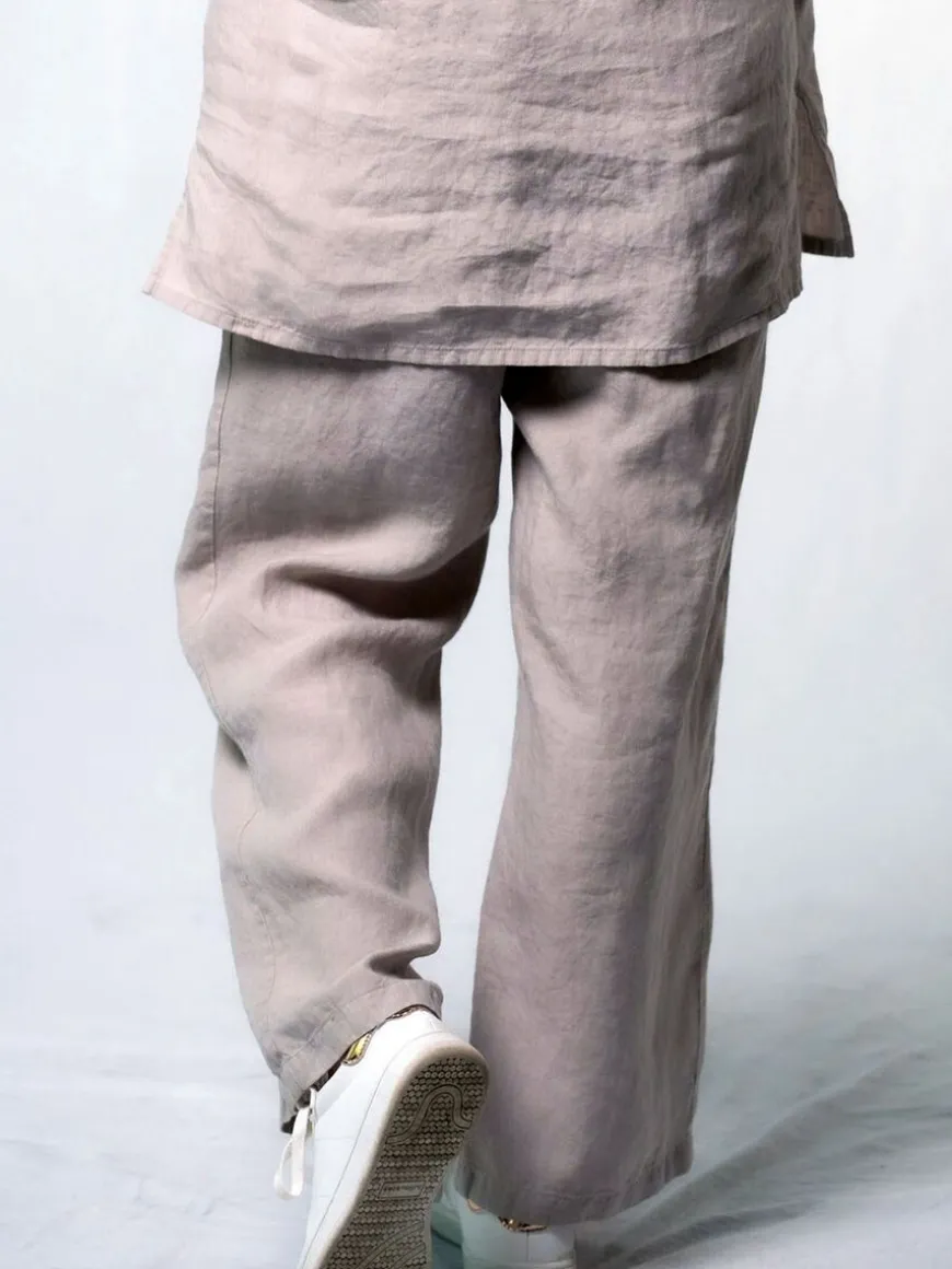 Cuosi -Merkin Hiekan Sävyiset Asta Pellavahousut.Asta Housuista Tulee Varmasti Lempihoususi, Sillä Niin Mukavilta Ne Tuntuvat Päällä 3 Lisäksi Ne Istuvat Todella Kauniisti Monelle Eri Vartalotyypille. Ei Siis Ihme, Että Asta-Housut Ovat Yksi Cuosin Suosituimpia Malleja! Yhdistä Mielesi Mukaan Niin Tyköistuvien Kuin Väljien Yläosien Kanssa. Yhteinäisen Lookin Luomiseksi Yhdistä Asta Housut Elsa Pellavajakun Kanssa!Housujen Mitoitus On Väljä Ja Rento, Lahkeet Kauttaaltaan Leveät. Kiinnitys Edessä Hoituu Vetoketjulla Sekä Napilla, Mikä Helpottaa Pukemista Ja Jättää Vatsan Seudun Armollisesti Vähemmän Poimutetuksi Edessä. Vyötärökaitaleen Taka- Ja Sivuosa Ovat Joustavat, Lisäski Vyötäröä Voi Säätää Itselleen Sopivaksi Eteen Solmittavalla Nauhalla, Joka Kulkee Vyötärökaitaleen Sisällä. Sivusaumoissa On Tilavat Taskut. Pellava On Erittäin Laadukasta Ja Miellyttävän Tuntuista Ihoa Vasten.