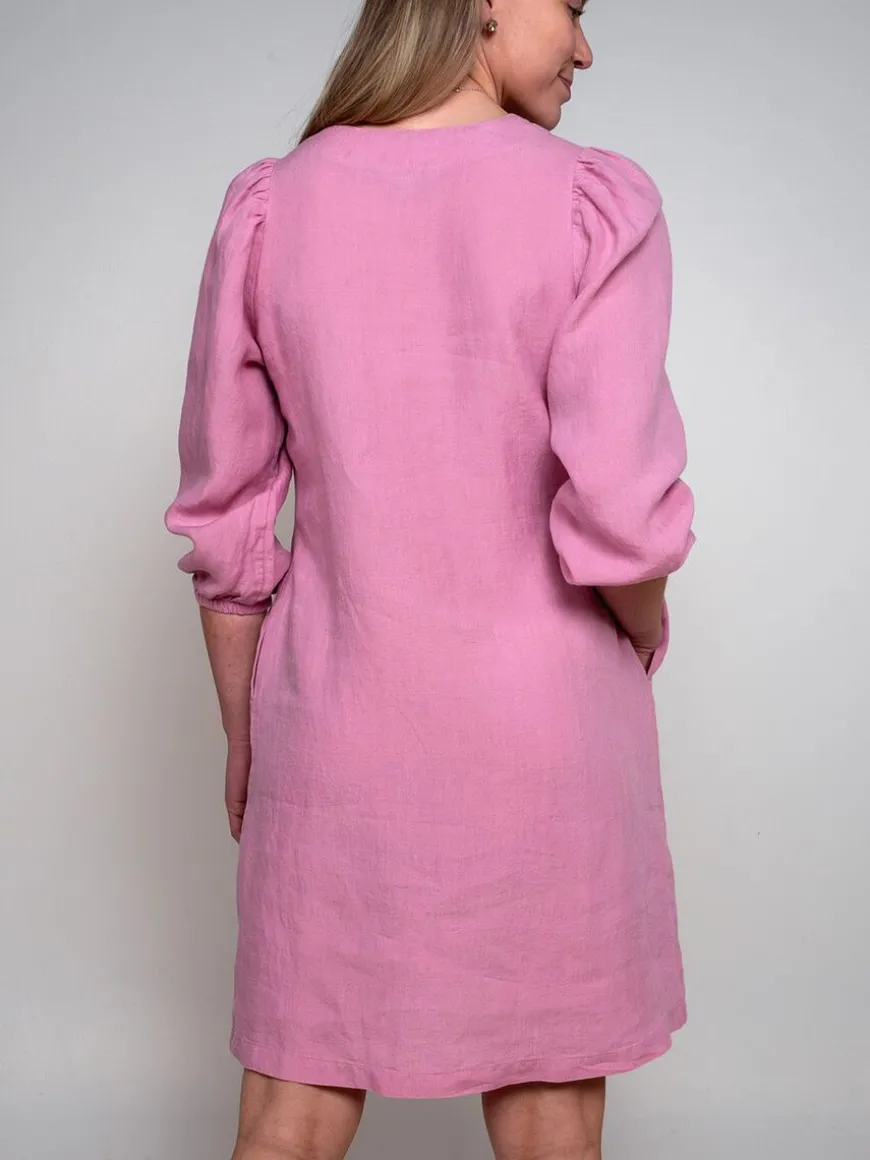 Cuosi -Merkin Pinkki Gala Pellavamekko.Puhvihihainen Gala On Valmistettu Laadukkaasta Pellavasta. Gala On Rento Ja Helppokäyttöinen Mekko, Jonka Ilmettä On Helppo Muuttaa Asusteilla Arkisesta Juhlavaksi. Pellavamekko On Omiaan Kesään, Mutta Menee Helposti Käytössä Ympärivuoden Kerrostamalla Sukkisten Ja Neuletakin Kanssa.Mekon Mitoitus On Maltillisen Väljä, Siinä On Puolipitkät Olalta Poimutetut Puhvihihat. Hihan Leikkaus Ja Poimutukset Asettuvat Olalla Hartialinjaa Kaventavaan Kohtaan, Ja Mekko Näyttää Yläosasta Sirolta Pussihihoista Huolimatta. Hihansuussa Poimutukset Päättyvät Kuminauhakujaan, Jonka Avulla Hihan Mittaa Voi Säätää Mieleisekseen. Mekossa On V-Pääntie Ja Sivusaumoissa On Taskut. Mekon Pituus Ulottuu Hieman Polven Yläpuolelle, Ja Se On Vuoriton. Mekko On Valmiiksi Tuotepesty Ja Esikutistettu, Joten Se Ei Enää Kutistu Seuraavilla Pesukerroilla. Cuosin Käyttämä Pellava On Erittäin Laadukasta Ja Miellyttävän Tuntuista Ihoa Vasten.