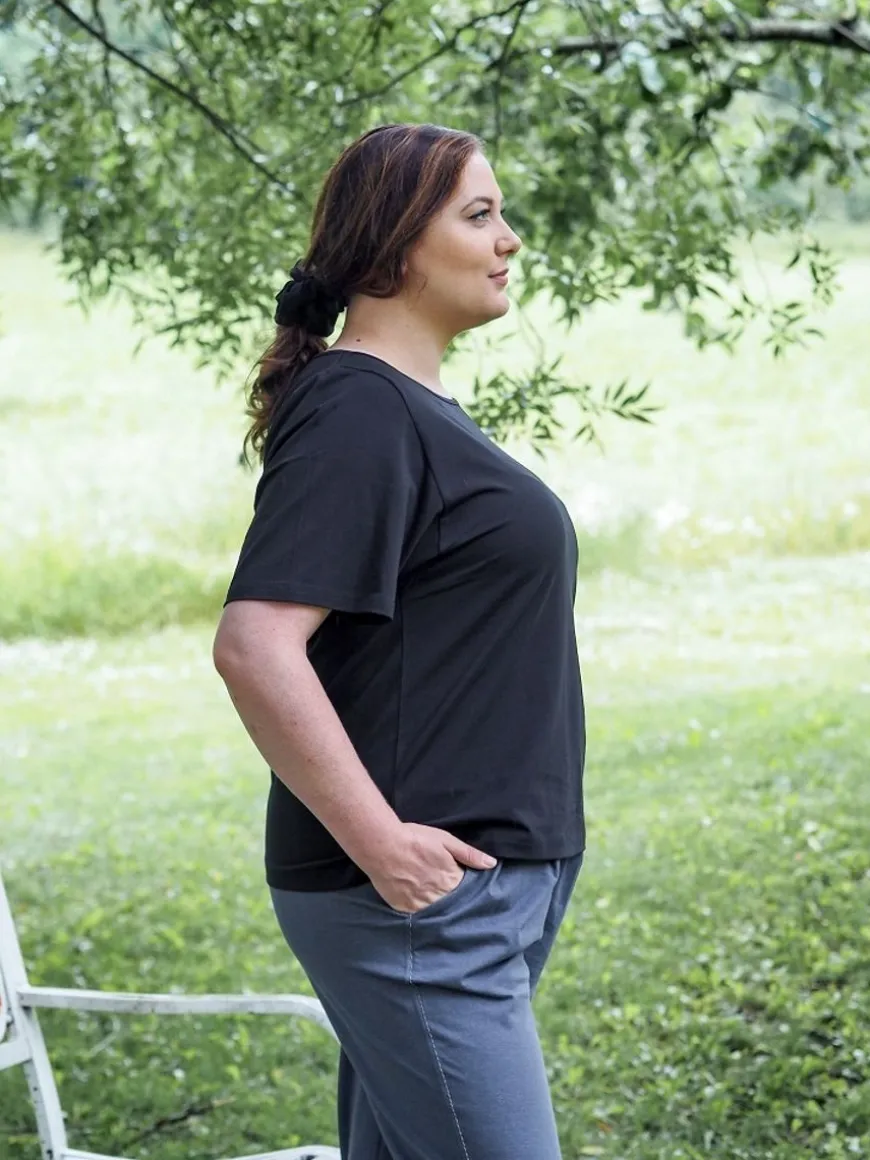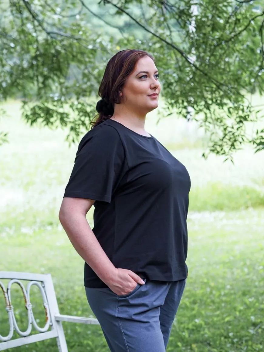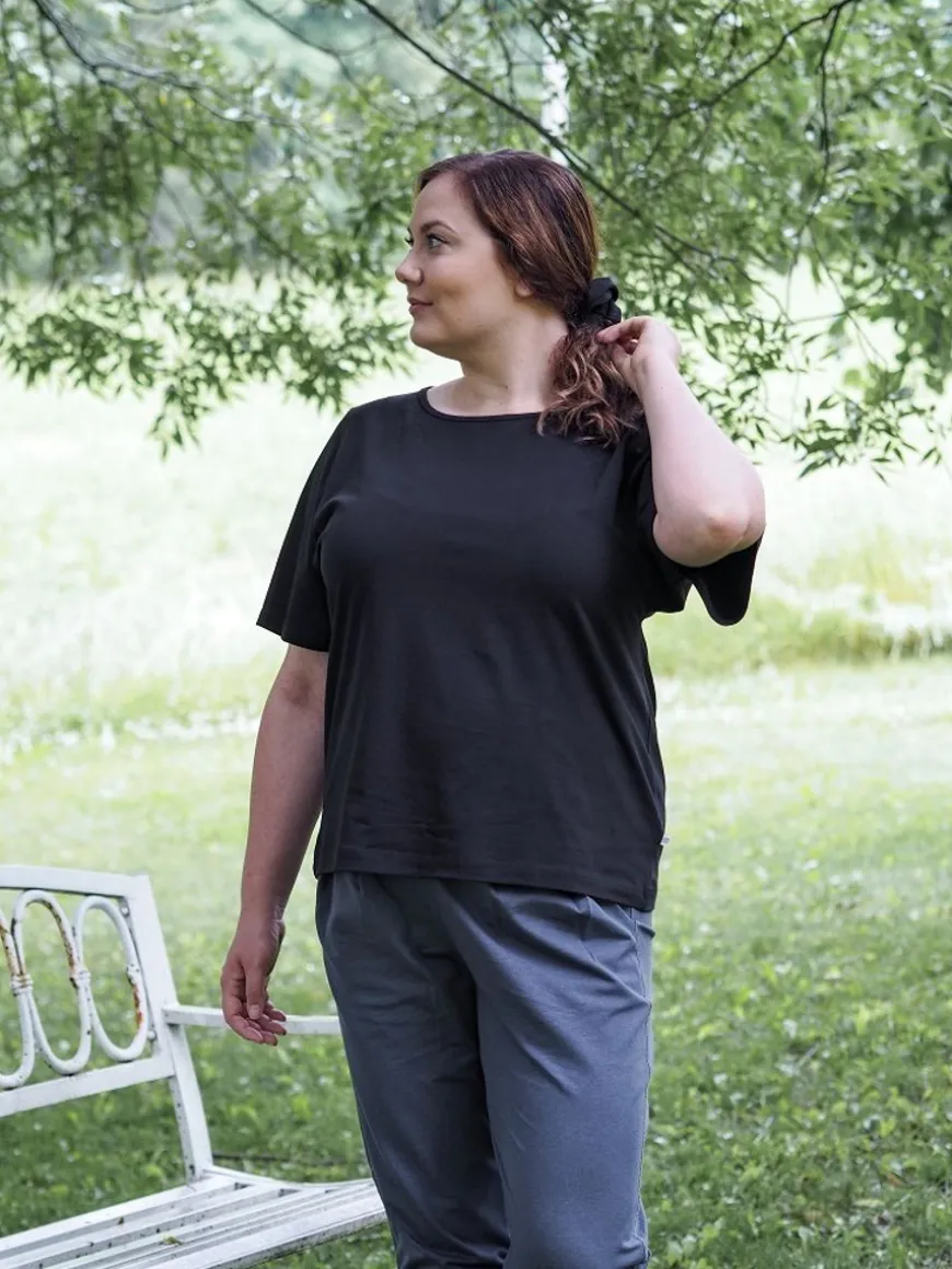 Puuvillatehdas -Merkin Fernanda T-Paita Mustana.Fernanda T-Paita On Niin Tyylikäs Ja Mukava Päällä, Että Siihen Haluaa Pukeutua Aina Uudelleen! Ajaton Musta T-Paita On Vaatekaapin Klassikoita Ja Helppo Muunnella Moneen Asuun Sopivaksi Ympäri Vuoden.Malliltaan Paita On Hieman Oversize, Jossa Laskettu Kainalo. Lepakkomainen Hiha Laskostuu Kauniisti Sivuille. T-Paidan Pituus Lantiolle.