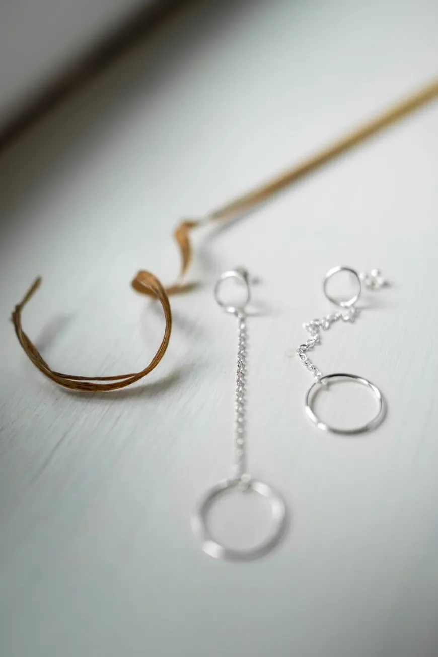 Design Luode -Merkin Hippa Korvakorut Ketjulla.Korujen Materiaali: 925-Hopeaturvallisia Käyttää, Sillä Raaka-Aineet Eivät Sisällä Nikkeliä.Korut Valmistetaan Käsityönä Omassa Verstaassa Äänekosken Konginkankaalla. Valmistaja Sanna Kuitunen.