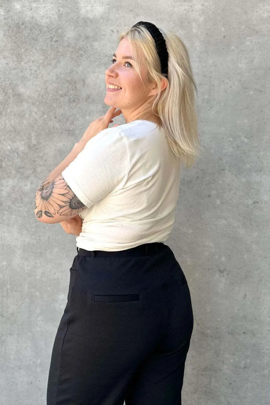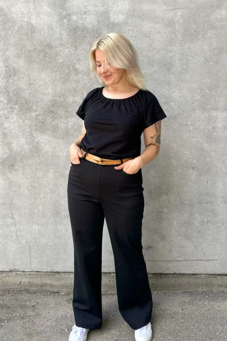 Hujaus -Merkin Mustat Fiini Housut.Leveät Fiini Housut Ovat Mukavat Housut Töihin Ja Vapaa-Aikaan. Korkea Kuminauhavyötärö On Mukava Päällä Ja Vyönlenkit Antavat Mahdollisuuden Korostaa Vyötäröä Vyöllä. Housun Malli On Imarteleva Ja Sopii Monenlaiselle Vartalolle, Lahje On Leveä Ja Täyspitkä.Housuissa On Taskut Edessä Ja Valetaskut Takana. Materiaalina Ponto Roma On Mukavan Joustavaa Ja Kankaan Pinnan Tekstuuri Antaa Fiiliksen Siistimmästä Housusta.Siistit Ja Mukavat Housut Töihin Ja Vapaa-Aikaankorkea Kuminauhavyötärö, Vyönlenkitleveä Täyspitkä Lahje