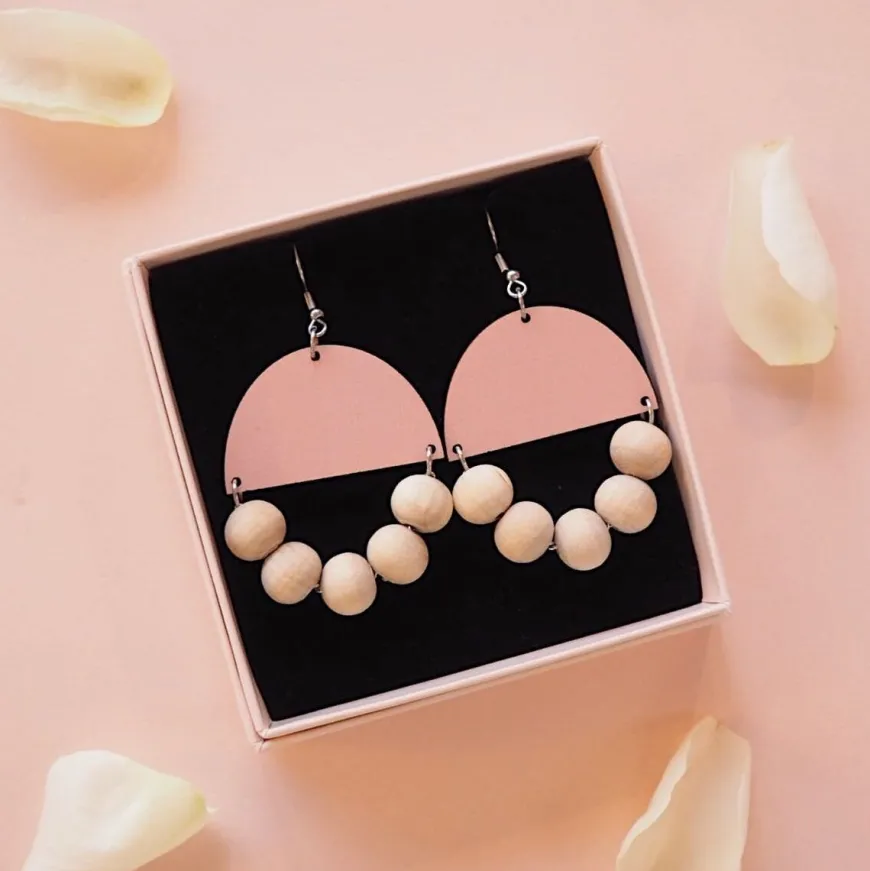 Maanantaimalli -Merkin Vaaleanpunaiset Huvitella Korvakorut. Koko:Korkeus: 6 Cmleveys: 3,8 Cmmateriaali: Koivuvanerimetalliosat: Korkealaatuista Ruostumatonta Terästäkorut Valmistetaan Käsityönä Turussa.