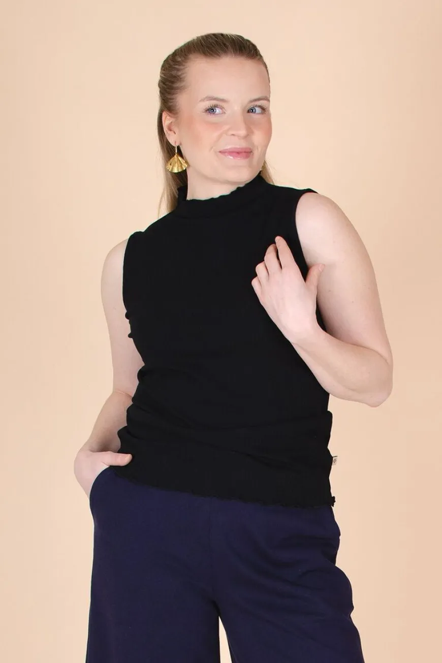Kaiko -Merkin Musta Ribbitoppi.Rib Top On Tyköistuva Hihaton Ribbineulostoppi, Jossa On Elegantti Kilpikonnakaulus. Pääntie Ja Helma On Viimeistelty Rullapäärmeellä, Joka Luo Kauniin Yksityiskohdan Klassiseen Toppiin. Ribbineulos On Sileää Ja Hyvin Laskeutuvaa Materiaalia, Jossa On Ylellinen Tuntu. Ribbitoppi Toimii Niin Sellaisenaan, Kuin Puettuna Esimerkiksi Neuletakin, Kimonon Tai Mekon Alle. Värinä Klassinen Musta.