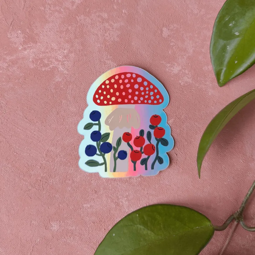 Pikku Paperi -Merkin Kärpässieni Tarra.Tarra On Kestävä: Voit Liimata Sen Läppärin Kanteen, Puhelimenkuoreen, Pyörään Tai Juomapulloon. Kestää Myös Astianpesukoneessa!Koko: 6,3 X 7,3 Cmmateriaali: Kiiltävä Holograafinen Vinyyli Painettu Ja Leikattu Ruotsissa. Suunnittelu Noora / Pikku Paperi.