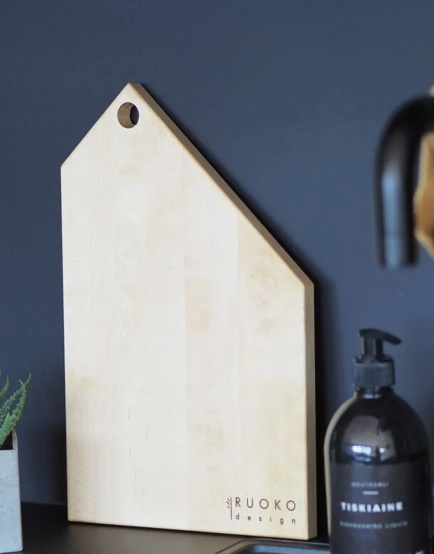 Ruoko Designin Koti Leikkuulauta.Tyylikäs Ja Ajaton Leikkuulauta. Talon Muodon Omaava Lauta Käy Myös Tarjoilualuseksi.Koko: 35 X 22 Cm Materiaali: Koivutuote On Suunniteltu Ja Valmistettu Keski-Suomessa. Tuote Soveltuu Elintarvikekäyttöön. Pinta On Viimeistelty 100% Kasvipohjaisella Unikkoöljyllä.Käsinpesu. Tarjotinta Voi Huoltaa Öljyämällä Sen Esimerkiksi Vuosittain Tai Käytön Mukaan. Näin Puun Väri Ja Kuviot Syventyvät Ja Pinta Pysyy Likaahylkivänä. Käsittelyyn Sopii Esimerkiksi Pellavaöljy, Parafiiniöljy Tai Unikkoöljy.