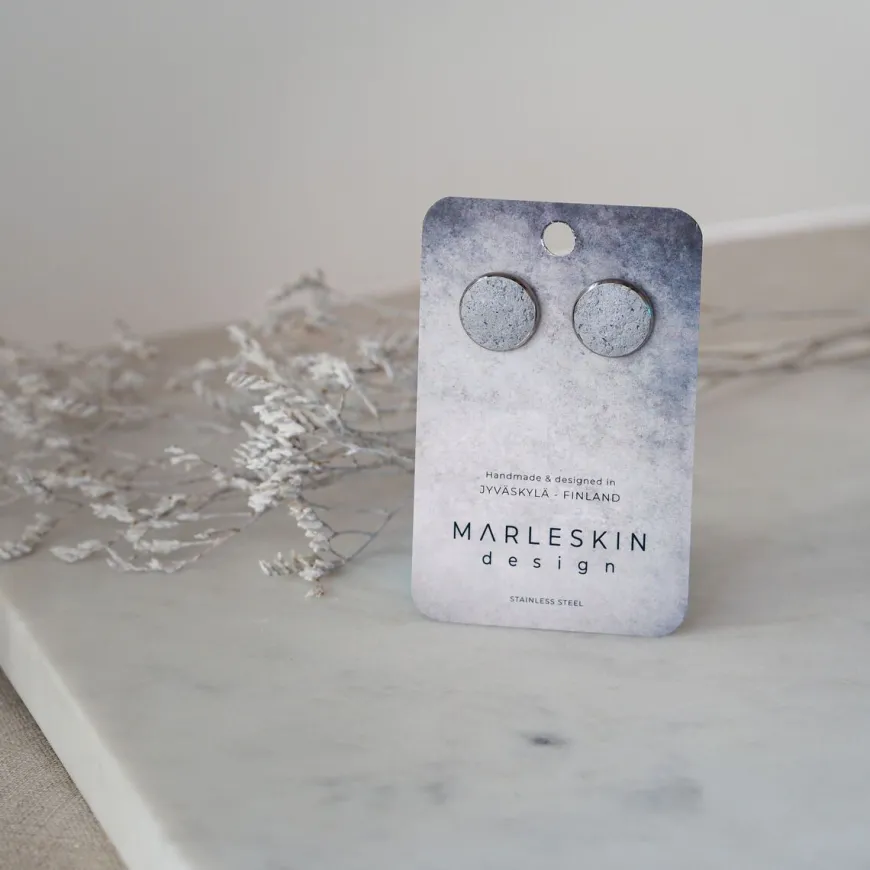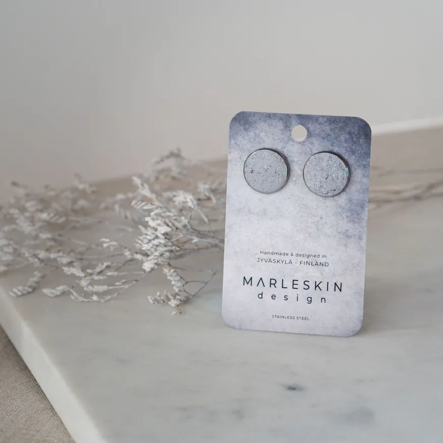 Marleskin Ainutlaatuiset Betoninappikorvakorut Jupiter Sävyssä.Lumo -Nappikorvikset Ovat Ajattomat Ja Tyylikkäät, Eivätkä Vain Pyöreän Muotoilunsa Tähden – Metallin Ja Betonin Liitto Luovat Modernin Ilmeen. Ne Sopivat Mainiosti Kauniissa Minimalistisuudessaan Kaikenlaisiin Seikkailuihin, Töihin, Kotoiluun… Nämä Ovat Joka Naisen ”Must Have” -Korvakorut Pitkäaikaiseen Elämänkumppanuuteen. Lumo -Nappikorvikset Ovat Saaneet Nimensä Kuusta, Joka On Lumonnut Ihmisiä Kautta Historian.Materiaali: Betoni Ja Kirurginteräskorut On Suunniteltu Ja Valmistettu Jyväskylässä.Hoito-Ohjeet:Betoni On Luonnostaan Huokoinen Materiaali, Joten Sen Pintaan Kertyy Ajan Kanssa Likaa. Vältä Korujen Altistumista Kaikille Kemikaaleille. Voit Pestä Korusi Miedolla Käsikäyttöön Tarkoitetulla Astianpesuaineella. Ei Suositella Liottamista Tai Korviksien Käyttämistä Saunassa.