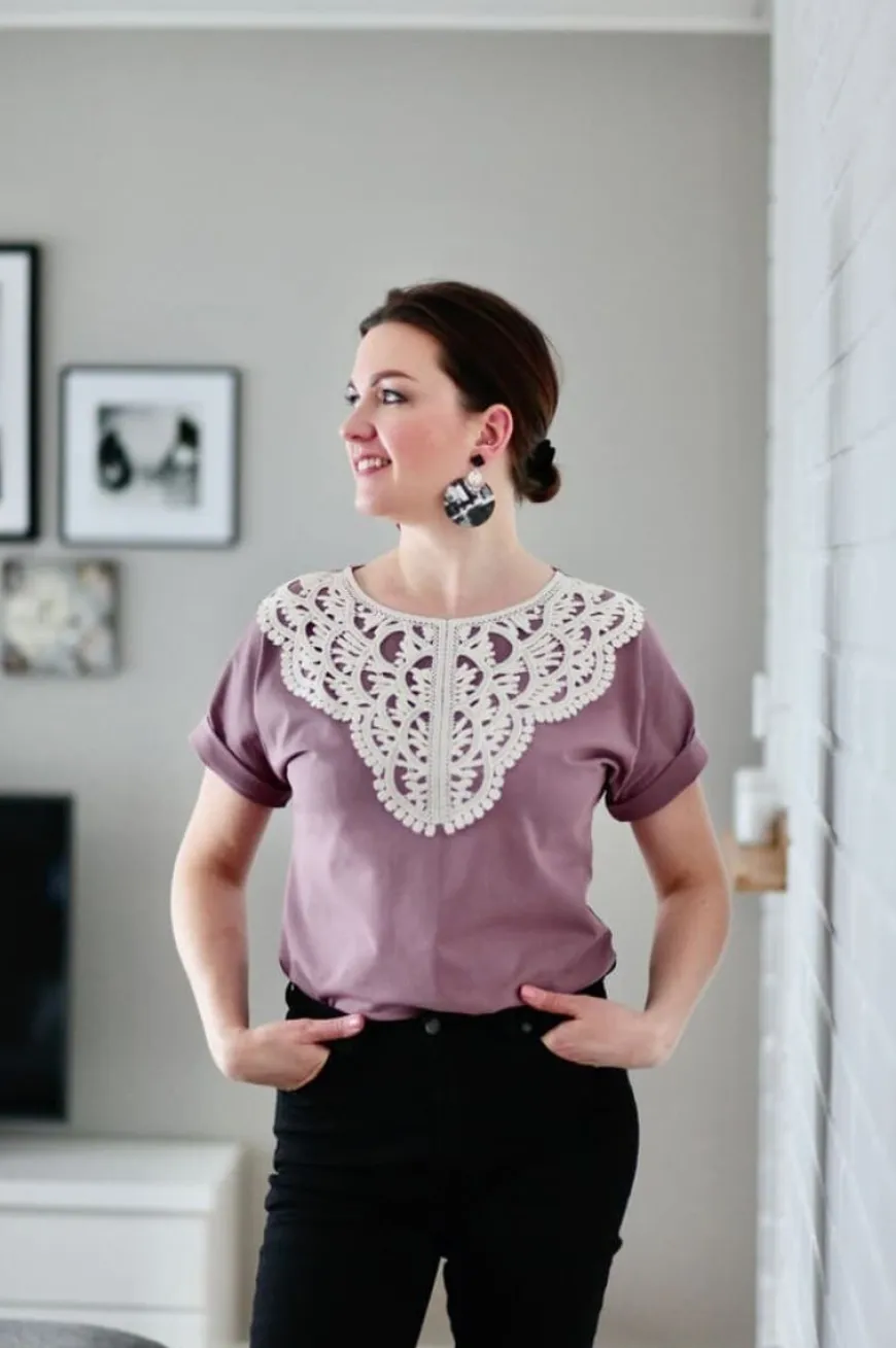 Lumoan -Merkin Ilona T-Paita Kauniissa Mauven Sävyssä.Perus Teepparista Voi Saada Myös Juhlavamman Lisäämällä Pääntielle Kauniin Pitsin! Ilonan Näyttävä Pitsikaulus On Kuin Koru. Paita Sopii Juhlavampiin Hetkiin Mutta Menee Hyvin Myös Arjessa.Ilonassa Kauniin Yksinkertainen Siluetti Yhdistyy Upeaan Pitsikaulukseen. Hihat Voi Kääriä Halutessaan Rennosti Rullalle Kun Tavoitteena On Rennompi Look.