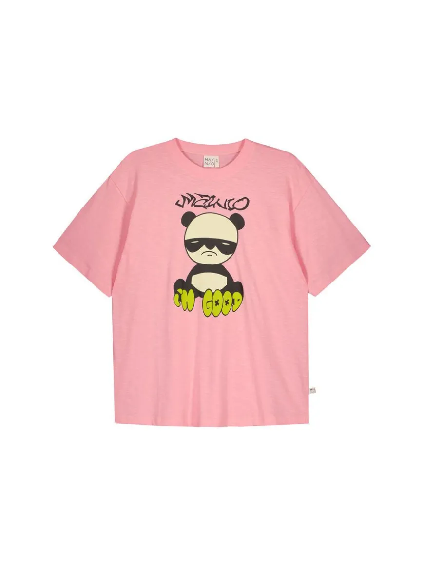 Mainio -Merkin I’M Good T-Paita.Ihanan Pehmeä Luomupuuvillainen Teeppari Arkeen Ja Vapaa-Aikaan. Vaaleanpunaisessa Paidassa Hauska Spy Panda Ja I’M Good Etuprintti.Slub-Lanka Antaa Materiaalille Eläväpintaisen Meleeratun Efektin.