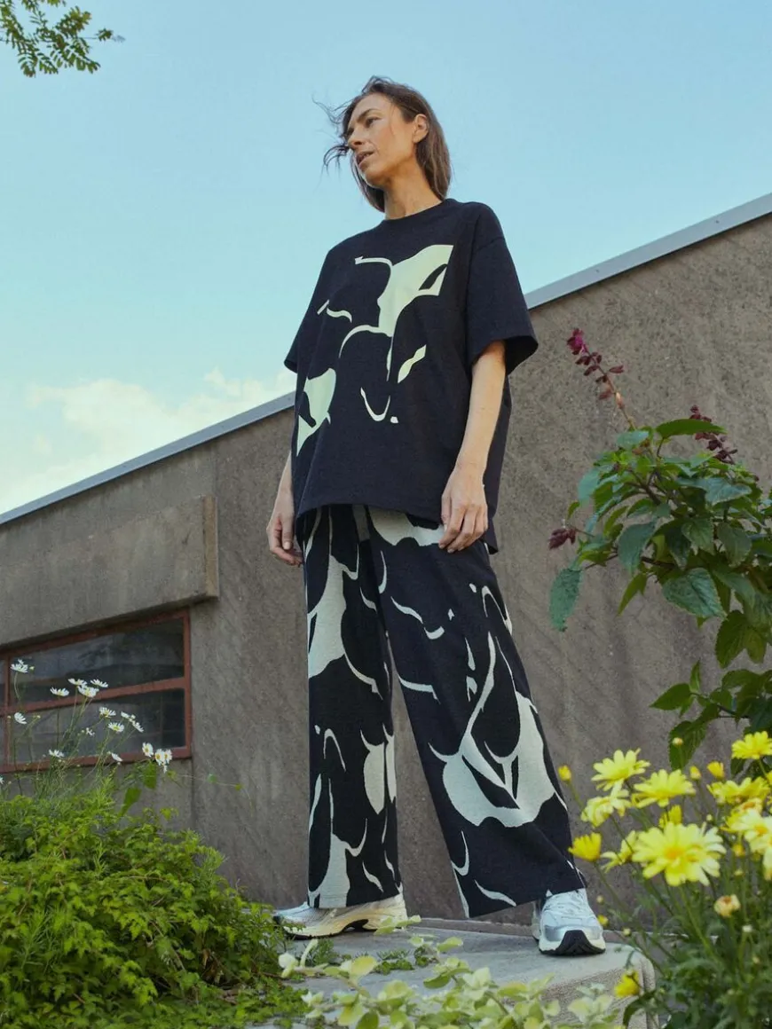Mainio -Merkin Waving T-Paita.Upealla Kuosilla Varustettu Teeppari Arkeen Ja Vapaa-Aikaan! Pue Yksiväristen Alaosien Kanssa Tai Yhdistä Saman Kuosin Housujen Kanssa Yhtenäisen Lookin Luomiseksi. Rohkein Pukee Myös Saman Kuosin Kimonon Paidan Ja Housujen Kanssa!Ihanan Pehmeässä Luomupuuvillaisessa T-Paidassa On Waving Etuprintti. Slub-Lanka Antaa Materiaalille Eläväpintaisen Meleeratun Efektin.