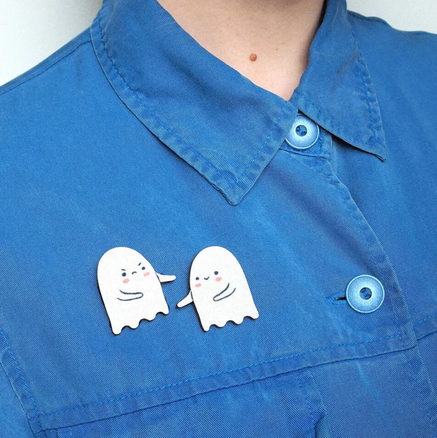 Mia Minerva -Merkin Ghost Plas Pinssit.Suloiset Kummituskaverit Pinssit Sopii Kivasti Paidankaulukseen, Laukkuun Tai Baskeriisi. Koko: N. 3,5 X 3,5 Cmpinssit Valmistetaan Pefc-Sertifioidusta Suomalaisesta Koivuvanerista. Metalliosat Ovat Ruostumatonta Terästä.Pinssit Valmistetaan Käsin, Joten Tuotteiden Välillä Saattaa Olla Pientä Eroa. Valmistettu Suomessa.