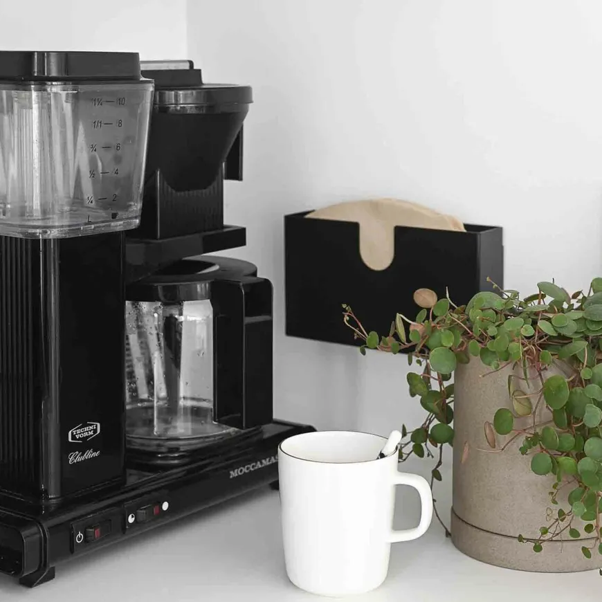 Miiko Design Musta Suodatinpussiteline.Tyylikäs Ja Minimalistinen Suodatinpussiteline Kahvin Ja Suomalaisen Designin Ystävälle! Ripusta Teline Seinälle Tai Jätä Pöydälle Keittiötä Kaunistamaan. Teline Sopii Säilyttimeksi Myös Kodin Muille Tavaroille. Kierrätettävä. Koko: 19,7 X 11 X 4,2 Cmmateriaali: Maalattu Terästuote On Valmistettu Suomessa.