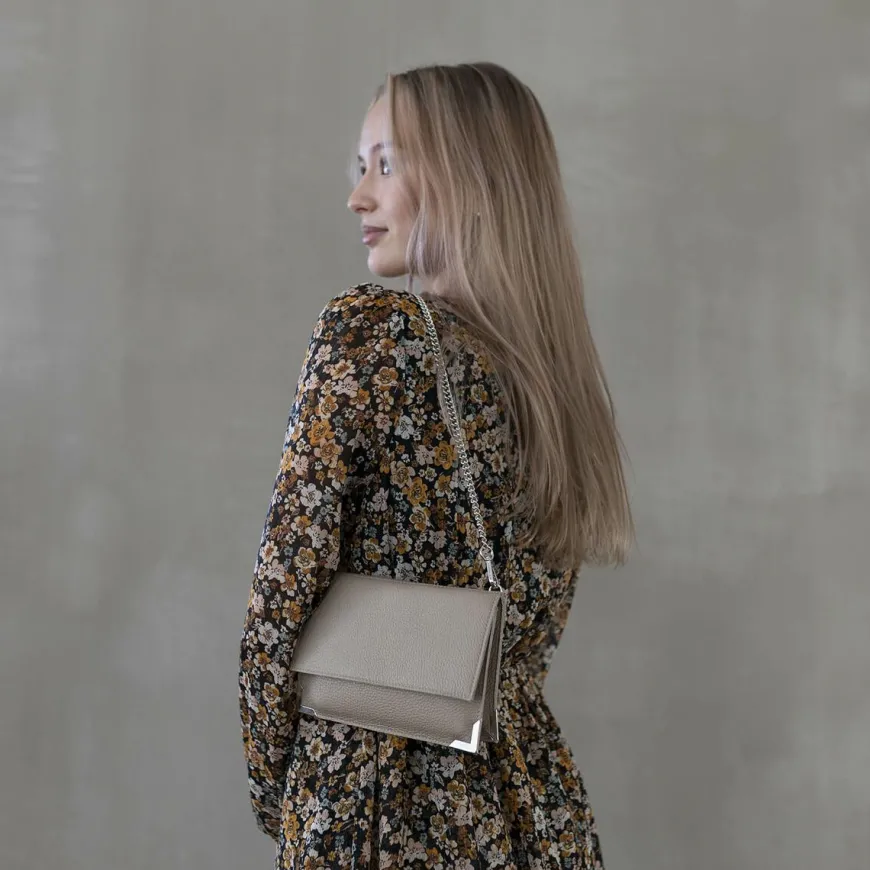 Miiko Design -Merkin Välke Laukku Titan Sävyssä.Uusi Lempilaukku Etsinnässä Tutustu Upeaan Välke Hirvennahkalaukkuun 3Tässä Olkalaukussa Yhdistyvät Tyyli, Käytännöllisyys Ja Ekologisuus. Välke Nahkalaukku On Suunniteltu Niin Arjen Kiireisiin Kuin Juhlavampiin Menoihin, Siinä On Sopivasti Tilaa Kännykälle, Kukkarolle, Avaimille Ja Huulirasvalle.Välke Laukku Sulkeutuu Kätevästi Nepparilla Ja Sen Sisällä On Kaksi Tilavaa Osiota, Joita Erottaa Kätevä Pieni Tasku. Välke Laukku On Monikäyttöinen, Sen Ajaton Tyyli Sopii Täydellisesti Niin Rentoihin Kuin Juhlaviinkin Asuihin. Lisää Eleganssia Laukkuun Saat Vaihtamalla Mukana Tulevan, Lyhyemmän Ketjuhihnan Nahkahihnan Tilalle. Ilman Hihnaa Voit Käyttää Välkettä Myös Clutch-Laukkuna.Koko: 20 X 13,5 Cmhihnan Pituus: 118Cm, Ketjuhihna 62Cm