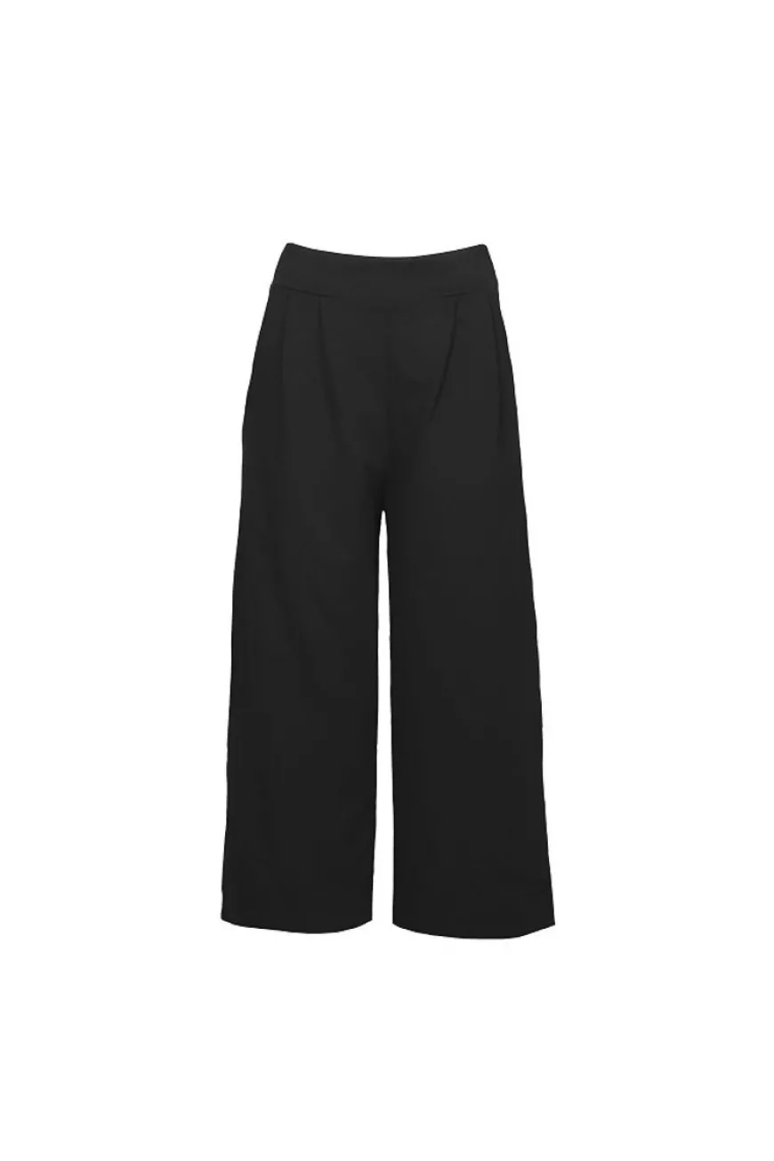 Puuvillatehdas -Merkin Mustat Milla Housut.Leveälahkeiset Milla Housut Ovat Täydelliset Tilaisuuteen Kuin Tilaisuuteen. Naisellisen Rennot Housut Ovat Mukavat Päällä, Mutta Silti Todellatyylikkäät. Housut Sopii Erinomaisesti Arkeen Tennareiden Kanssa, Ja Illan Tullen Vaihda Vain Korot Jalkaan!Housuissa On Mukava Kuminauha Vyötäröllä. Edessä On Pienet Laskokset. Materiaali On Ylellistä Ja Hieman Vahvempi Trikoota.