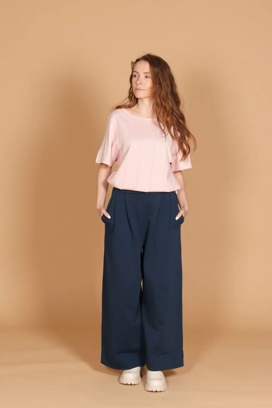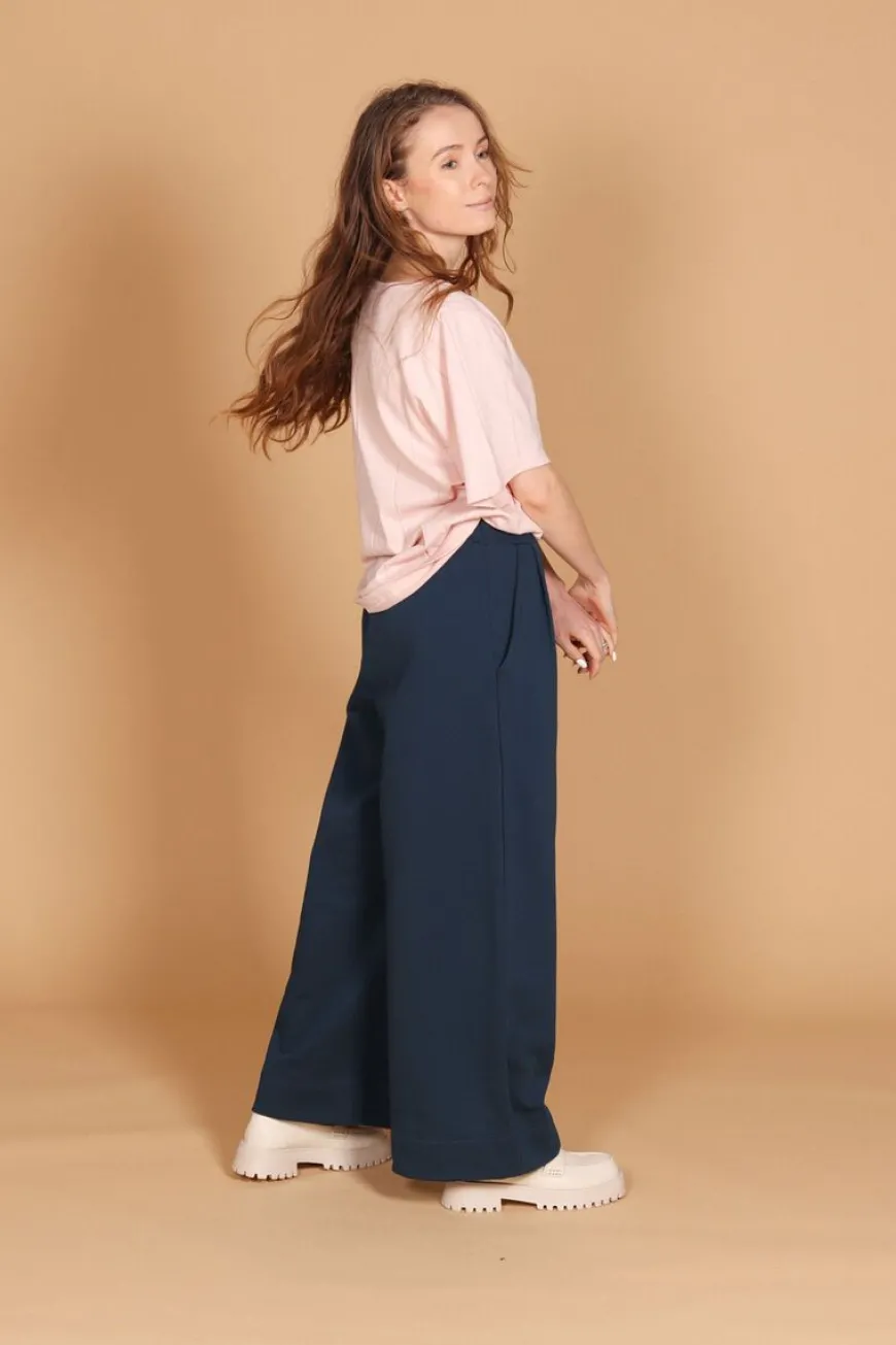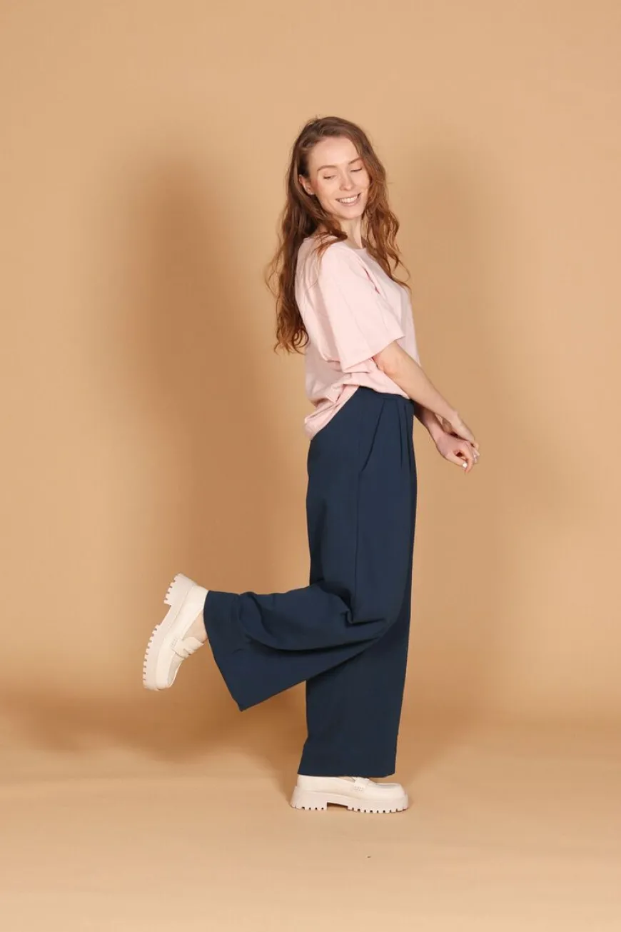 Puuvillatehdas -Merkin Milla Housut Sinisenä.Leveälahkeiset Milla Housut Ovat Täydelliset Tilaisuuteen Kuin Tilaisuuteen! Naisellisen Rennot Housut Ovat Mukavat Päällä Tyylikkyydestä Tinkimättä. Housut Sopivat Tilaisuudesta Riippuen Niin Tennareiden Kuin Korkkareidenkin Kanssa. Yhdistämällä Housut Erilaisiin Kokonaisuuksiin, Housut Toimivat Niin Arjessa Kuin Juhlissakin.Housuissa On Kuminauha Vyötäröllä. Edessä On Pienet Laskokset. Materiaali On Ylellistä Ja Hieman Vahvempi Trikoota.