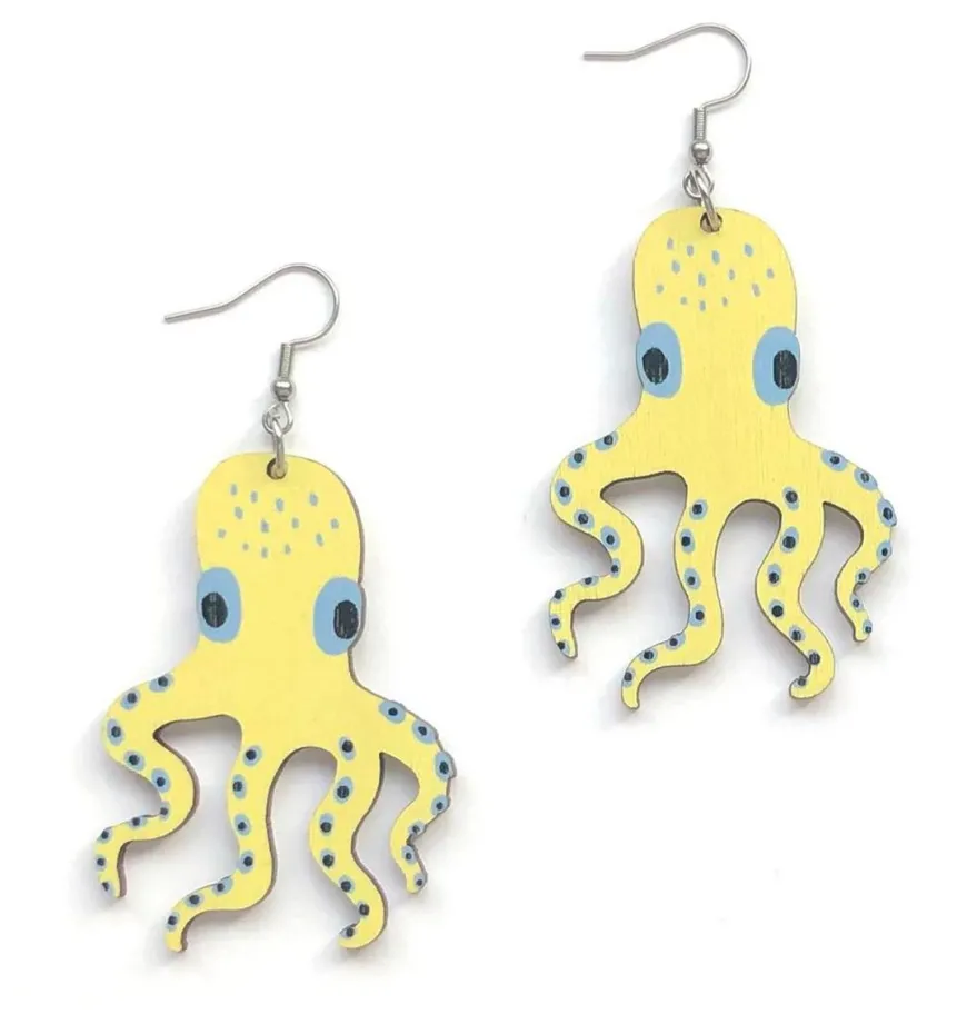 Crazy Granny Designs -Merkin Octopus Korvikset.Mitat:Korkeus Ilman Koukkuja: 57 Mmleveys: 41 Mmmateriaali: Suomalainen Koivuvaneri, Kuvio On Digitaalisesti Printattumetalliosat: Ruostumaton Teräs Mukana Tulee Silikoniset Tapit, Jotta Korvikset Pysyvät Varmasti Mukana Menoissa.Vältä Korvakorujen Joutumista Veden Tai Kemikaalien (Esim. Hiuslakan Jne.) Kanssa Kosketuksiin.Korut Suunnitellaan Ja Valmistetaan Suomessa.