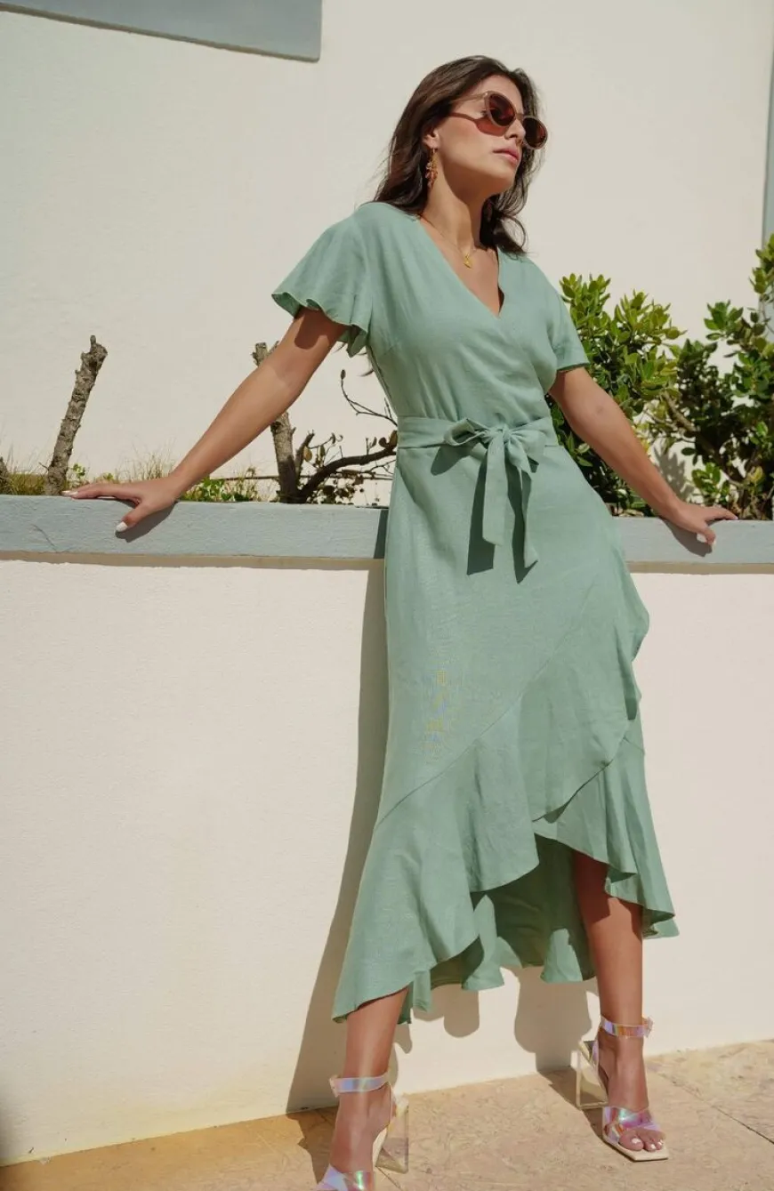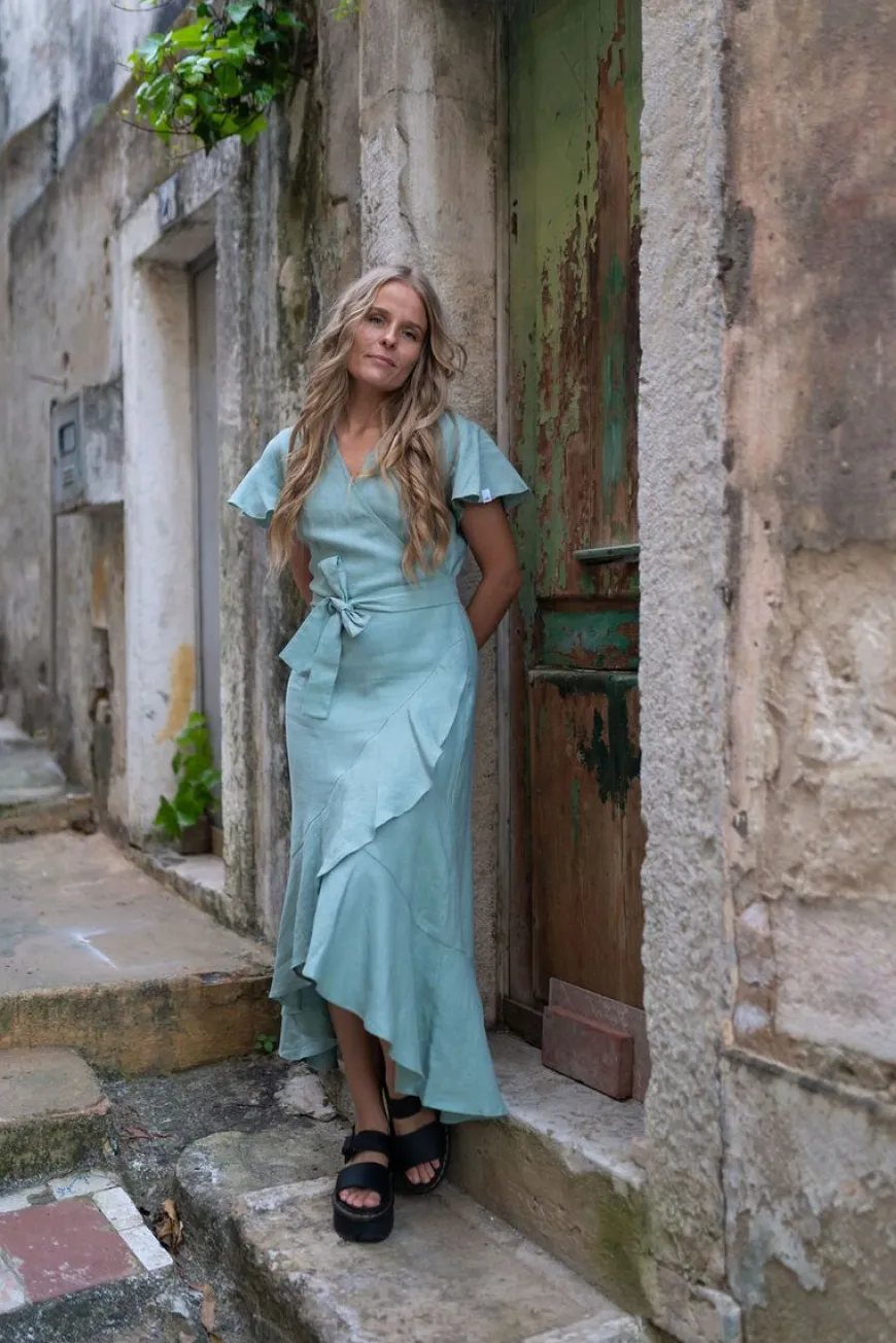 Nakoa -Merkin Annika Mekko Desert Sage Sävyssä.Annika Dress On Naisellinen Katseenvangitsija, Jonka Yhdistelymahdollisuudet Ovat Rajattomat! Jo Itsessään Mekko On Näyttävä Valinta, Mutta Se Sopii Myös Kerrostettavaksi Neuleen, Trenssin Tai Nahkatakin Pariksi. Tätä Mekkoa Imartelevat Niin Korot, Maiharit, Tennarit Kuin Paljaatkin Jalat. Etsit Mekkoa Sitten Kesän Juhliin Tai Monipuoliseen Arkeen, Valekietaisumekko Toimii Tilanteeseen Kuin Tilanteeseen.Valekietaisumalli Ja Eri Tavoin Solmittava Vyötärönauha Varmistavat Istuvuuden Jokaiselle Vartalolle, Ja Imartelevat Muotoleikkaukset Luovat Kauniin Siluetin Korostaen Juuri Oikeita Kohtia. Helmassa Ja Hihoissa Toistuvat Hulmuavat, Aaltoilevat Muotolaskokset Laskeutuvat Kauniisti. 100% Pellavasta Valmistettu Mekko On Midimittainen, Ja V-Pääntien Siluetti Toistuu Helman Leikkauksessa. Mekon Helmassa On Vuori.
