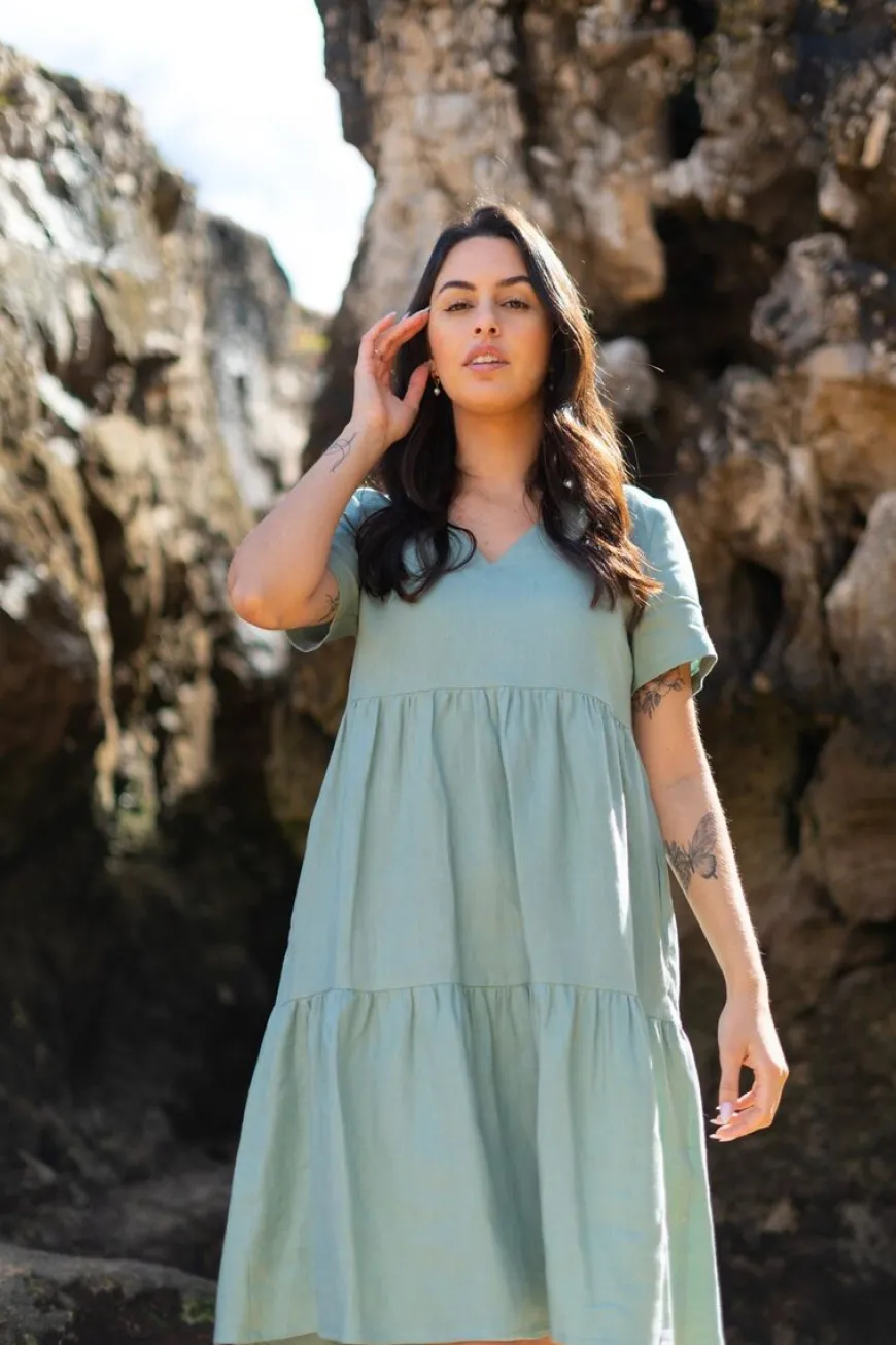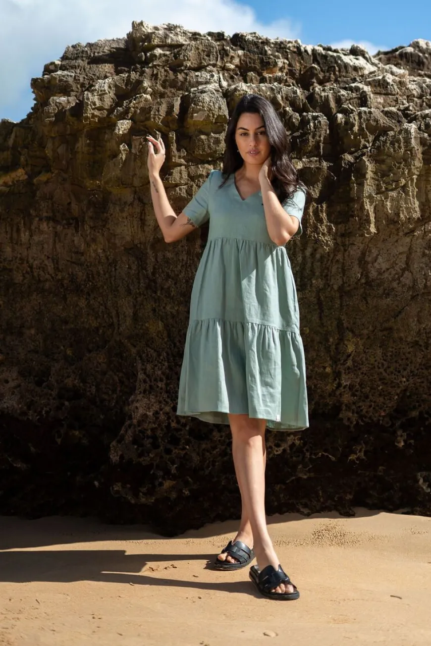 Nakoa -Merkin Pellavakerrosmekko Desert Sage Sävyssä.Ikoninen Nakoan Pellavamekko Tuo Ripauksen Luksusta Arkeen! Trendikäs Pellava Sopii Täydellisesti Niin Helteiseen Kesäpäivään Kuin Viilenevään Kaupunki-Iltaan. Pellava Tuntuu Ihoa Vasten Mukavan Hengittävältä Ja Kevyeltä. Kerrokset Toimivat Viehättävänä Yksityiskohtana Ja Luovat Kauniin Siluetin.Täydellinen Kesäasu Syntyy Cross Bag -Laukun Sekä Aurinkolasien Kanssa. Syksyllä Mekko Sopii Kauniisti Neuleen Ja Saappaiden Pariksi. Kaunis Nakoan Pellavasta Valmistettu Kerrosmekko On Täydellinen Valinta Niin Juhlapäivään Kuin Leikkikentälle!