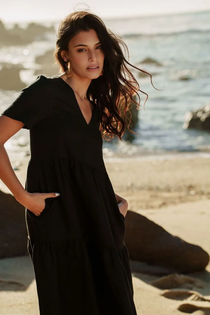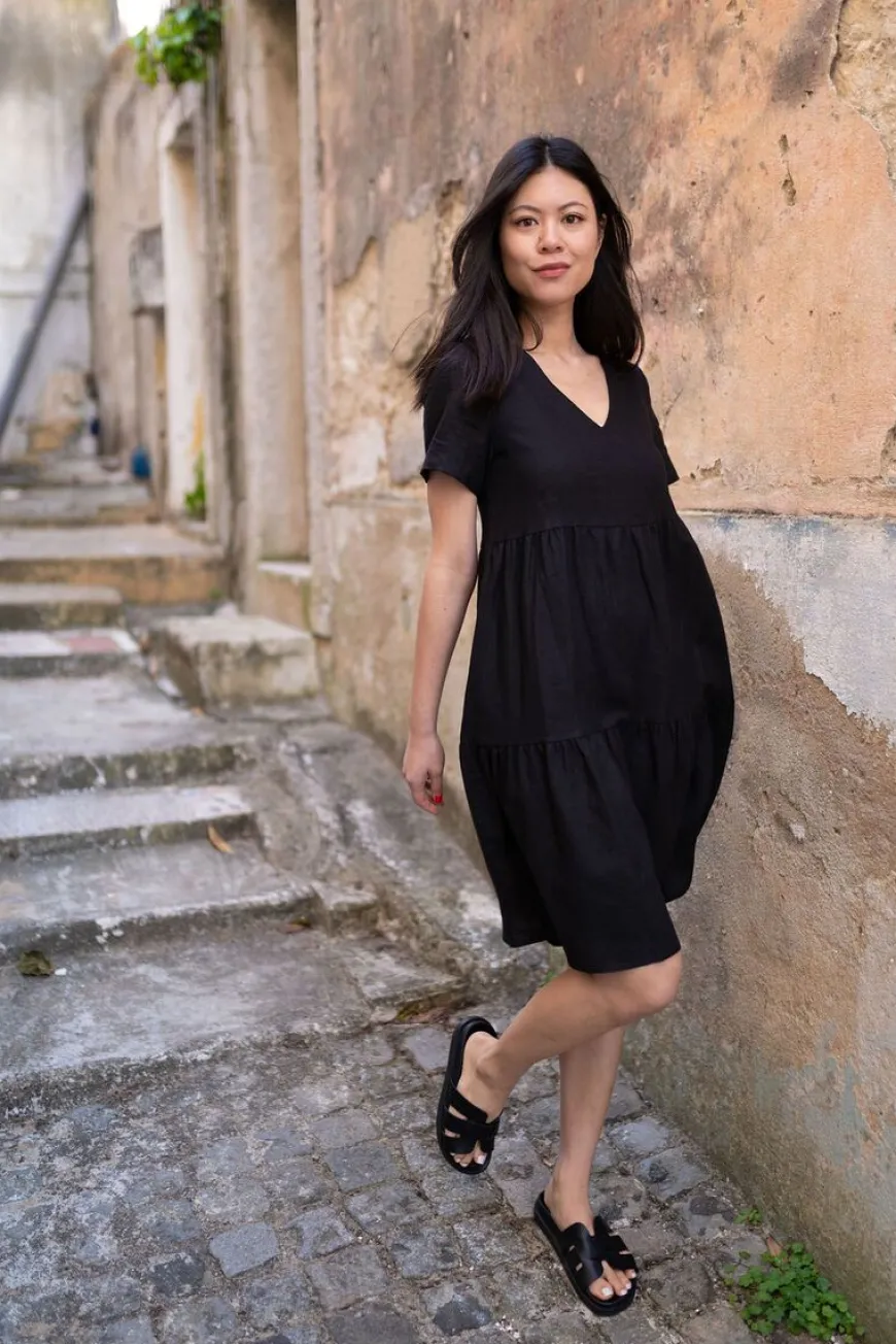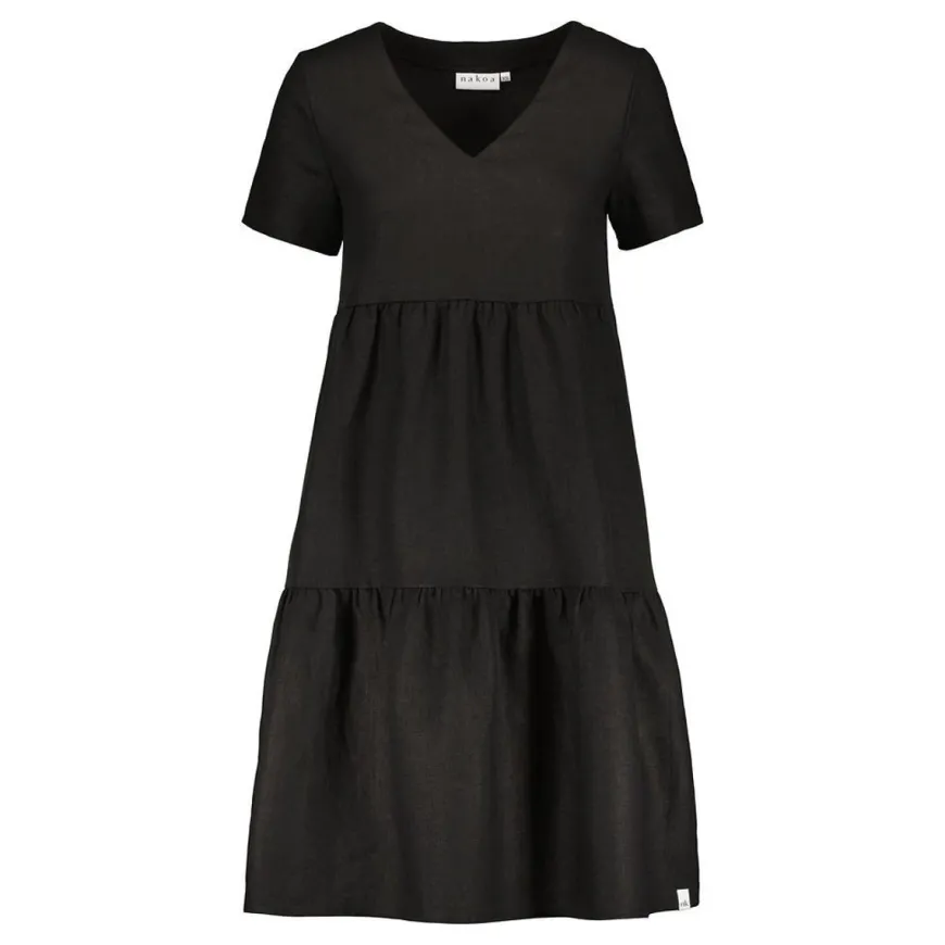 Nakoa -Merkin Pellavakerrosmekko Klassisena Mustana.Ikoninen Nakoan Pellavamekko Tuo Ripauksen Luksusta Arkeen! Trendikäs Pellava Sopii Täydellisesti Niin Helteiseen Kesäpäivään Kuin Viilenevään Kaupunki-Iltaan. Pellava Tuntuu Ihoa Vasten Mukavan Hengittävältä Ja Kevyeltä. Kerrokset Toimivat Viehättävänä Yksityiskohtana Ja Luovat Kauniin Siluetin.Täydellinen Kesäasu Syntyy Cross Bag -Laukun Sekä Aurinkolasien Kanssa. Syksyllä Mekko Sopii Kauniisti Neuleen Ja Saappaiden Pariksi. Kaunis Nakoan Pellavasta Valmistettu Kerrosmekko On Täydellinen Valinta Niin Juhlapäivään Kuin Leikkikentälle!