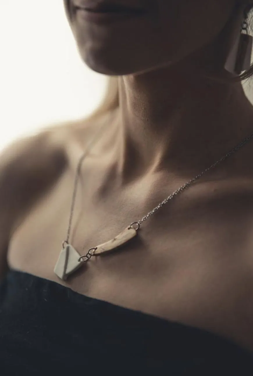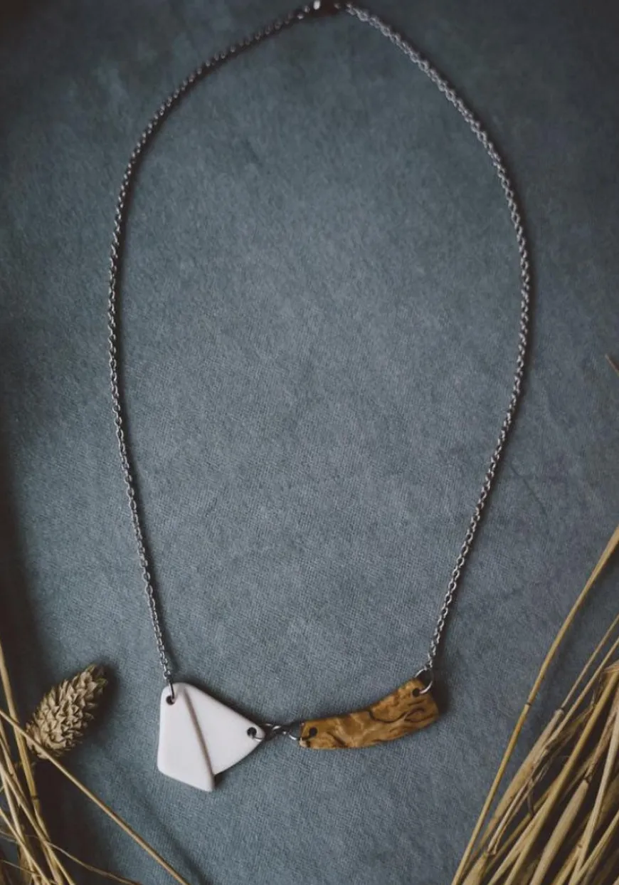 Nanoon Design -Merkin Sylvia Kaulakoru.Erottuva Kaulakoru, Joka Leikkiin Epäsymmetrialla Ja -Tasapainolla Kuin Vaaka. Hiotussa Posliiniosiossa Keskellä Pieni Porrastus.Korussa Yhdistyy Sileäksi Hiottu, Lasittamaton Posliini Ja Luonnonkaunis, Suomalainen Visakoivu. Posliini- Ja Puuosat On Valmistettu Alusta Loppuun Käsityönä, Minkä Ansiosta Korun Jokainen Osa On Oma Yksilönsä. Myös Puuosion Satunnaisesti Vaihteleva Kuviopinta On Kuin Sormenjälki, Joka Tekee Jokaisesta Korusta Uniikin.Korujen Puuosien Sävyissä Tai Kuviopinnoissa Saattaa Esiintyä Vaihtelua, Joka Kuuluu Materiaalin Luonteeseen. Kaulakorun Pituus: 55 Cmmateriaalit:Visakoivu On Ylijäämäpuuta Ja Hattulassa Tontin Raivaamisessa Kaadettua Visakoivua. Puuosat On Käsitelty Kestäviksi Kasviöljy- Ja Luonnonvahapohjaisella Puuvahalla. Korujen Metalliosat Ovat Allergiavapaata Ja Tummumatonta Kirurginterästä. Korut Pakattu Mustaan Nanoon Design Logolliseen Rasiaan. Valmistettu Suomessa.