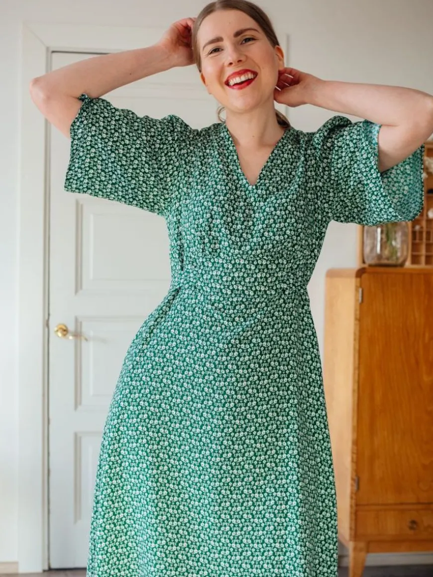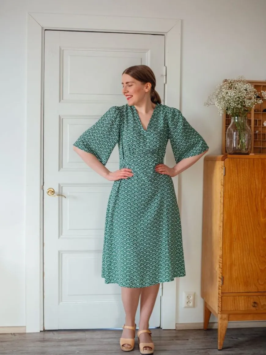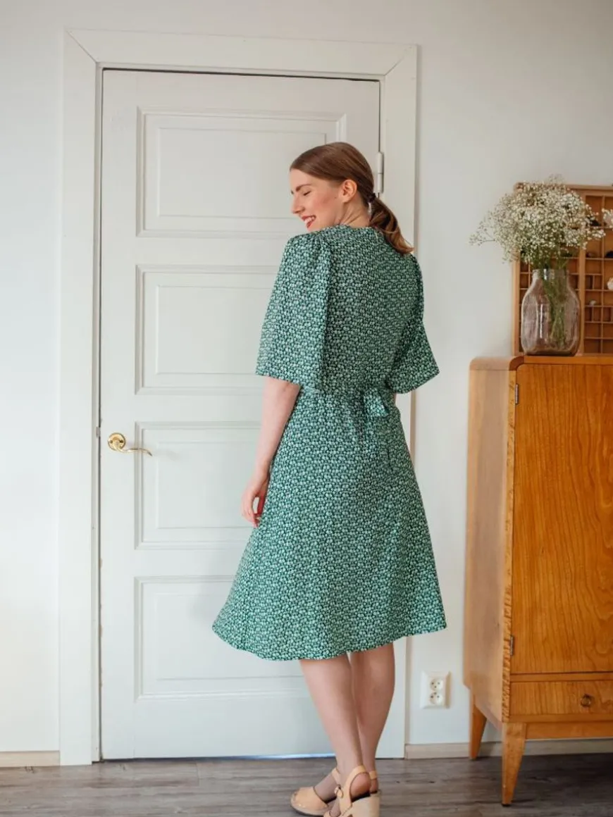 Nouki -Merkin Hurma Midimekko Hurmaa Kauniilla Leikkauksellaan!Hurma Mekossa On Ihana Naisellinen Leikkaus Vyötäröllä, Joka Korostaa Kauniisti Vartalon Yläosaa. Mekko On Täydellinen Valinta Etenkin Juhlaan, Mutta Älä Jätä Sitä Pölyttymään Kaappiin, Vaan Pue Se Myös Arkea Piristämään 3V-Pääntie Ja Hiemankellotetut Puolipitkät Hihat. Taakse Solmittavilla Nauhoilla Voi Säätää Vyötärön Kireyttähaluamakseen, Joten Vaikka Malli On Aika Istuva Niin Vyötäröllä On Kuitenkin Liikkumavaraa. Midimittainen Alaspäin Kellottuva Helma. Selässä Huomaamaton Piilovetoketju.Materiaalina Unelman Kevyt Ja Kauniisti Laskeutuva Ohut Fsc-Sertifioitu Viskoosikangas, Johon Digiprintattu Eeva Mäkelän Suunnittelema Herkkä Ja Upea Kedolla-Kuosi. Kuosi On Väriltään Raikkaan Vihreä.