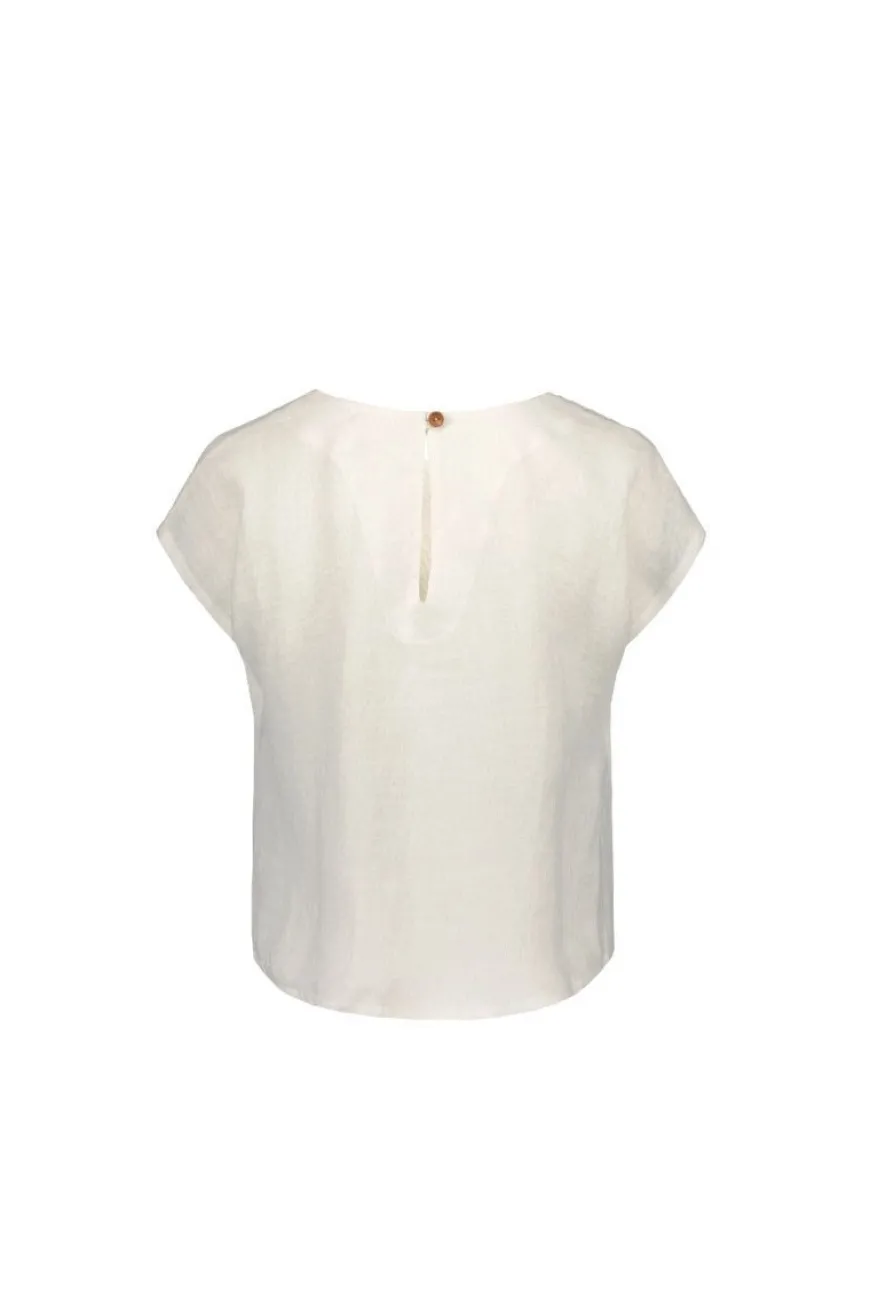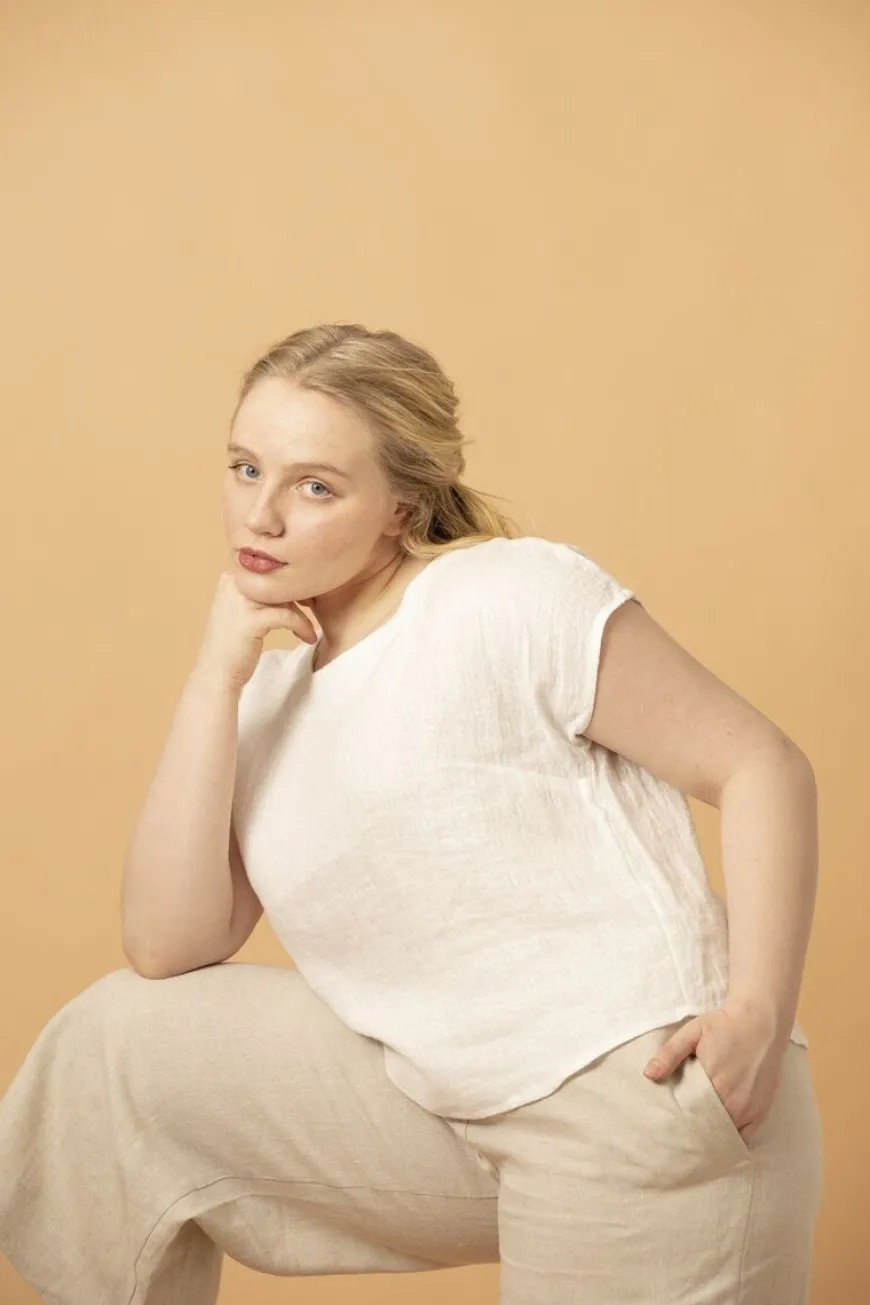 Nouki -Merkin Selja Paita Valkoisena.Yksinkertaisen Tyylikäs Ja Simppeli Pellavapaita, Jota On Helppo Yhdistellä Moneen Eri Asuun Ja Tilanteeseen. Paidassa On Suora Lyhyehkö Malli, Johon Rintamuotolaskokset Tuovat Juuri Sopivasti Istuvuutta. Kaunis, Laakea Pääntie. Pieni Holkkihiha Viimeistelee Pelkistetyn Mallin Ja Suojaa Olkapäitä Auringolta. Takana Pääntiellä Sievä Halkio Ja Puunappi.Materiaalina Pehmoinen, Esikutistettu Pellavajacquard, Jossa Anna Reilinin Suunnittelema Hienovaraisesti Toistuva, Yksivärinen Struktuurikuvio. Kankaan Sidos On Melko Löyhä, Joten Valitsethan Tarpeeksi Väljän Koon, Jotta Vaate Kestää Pitkään Käytössä.