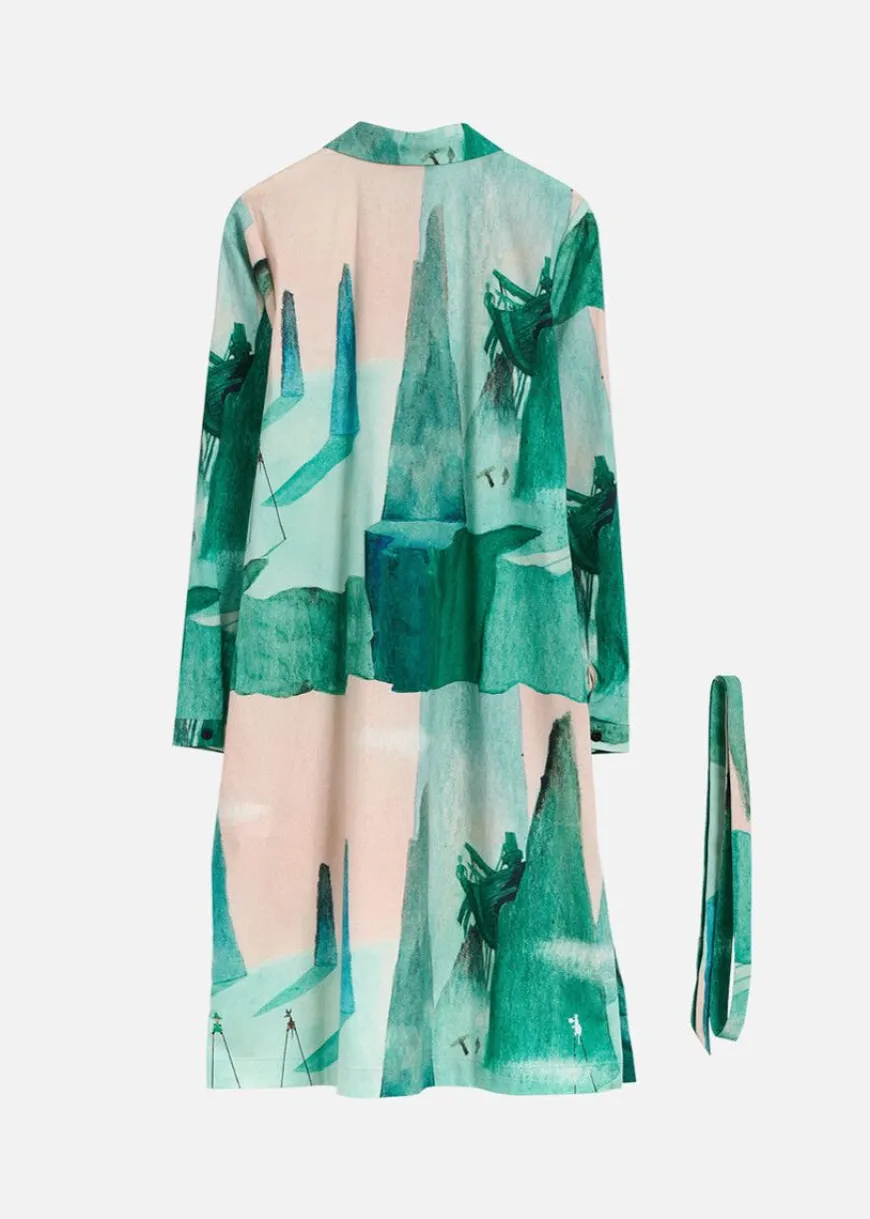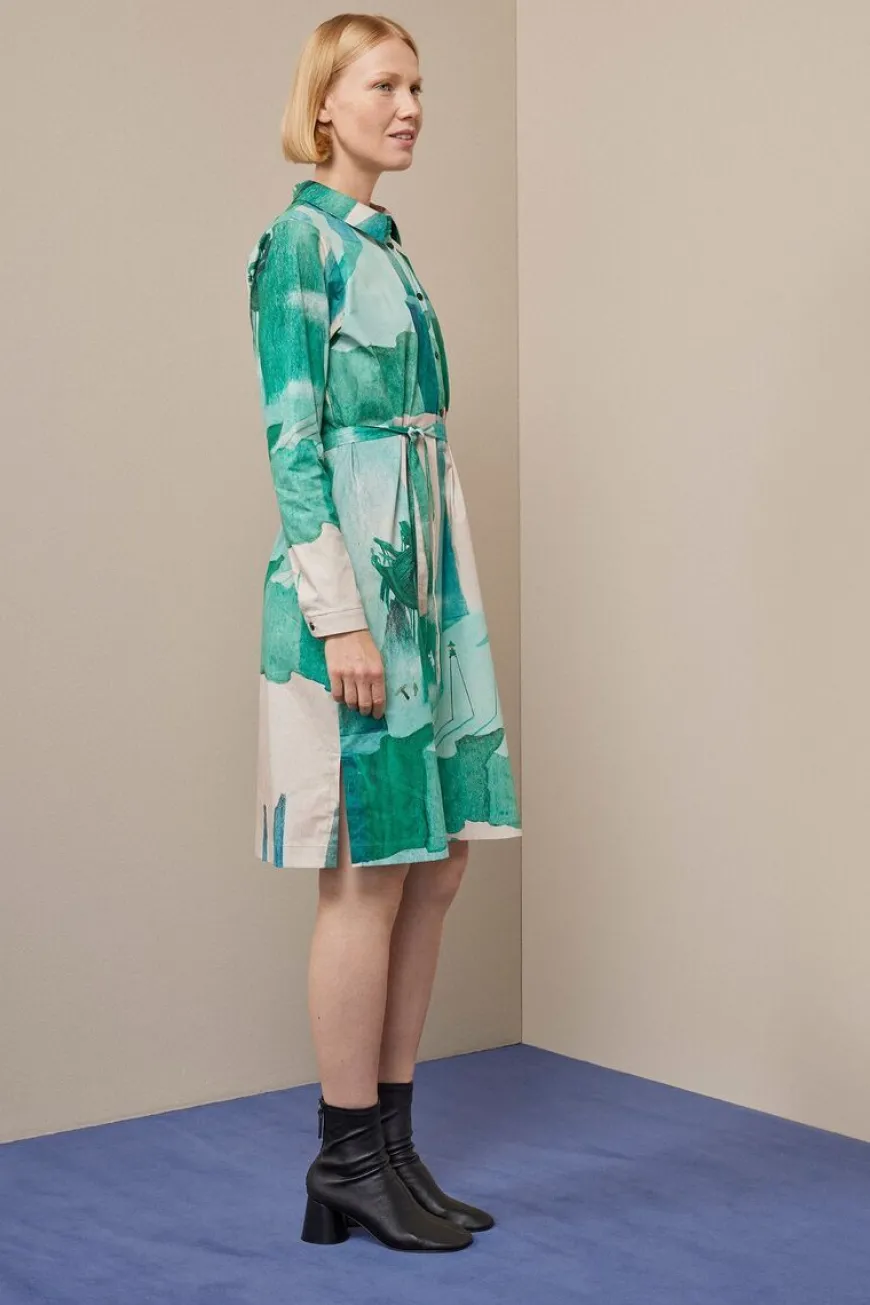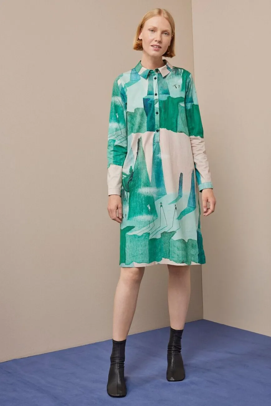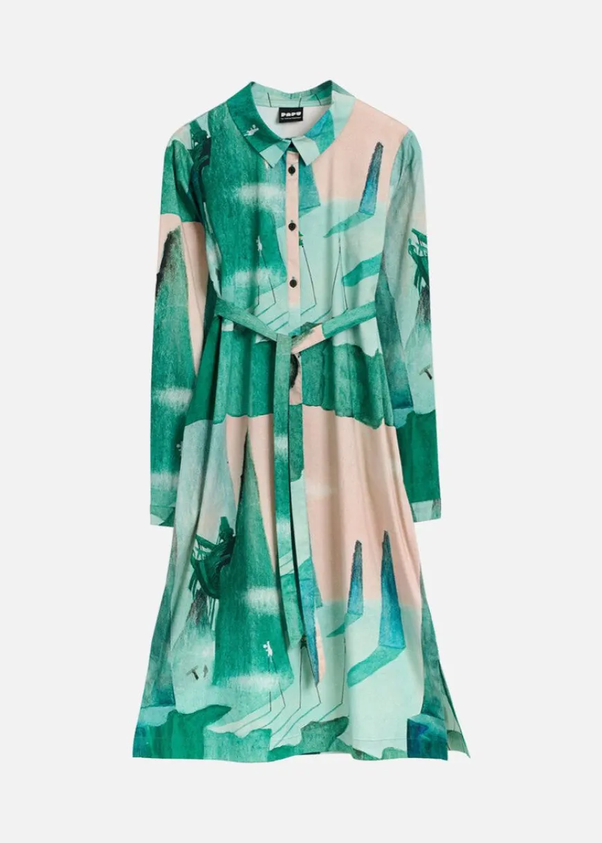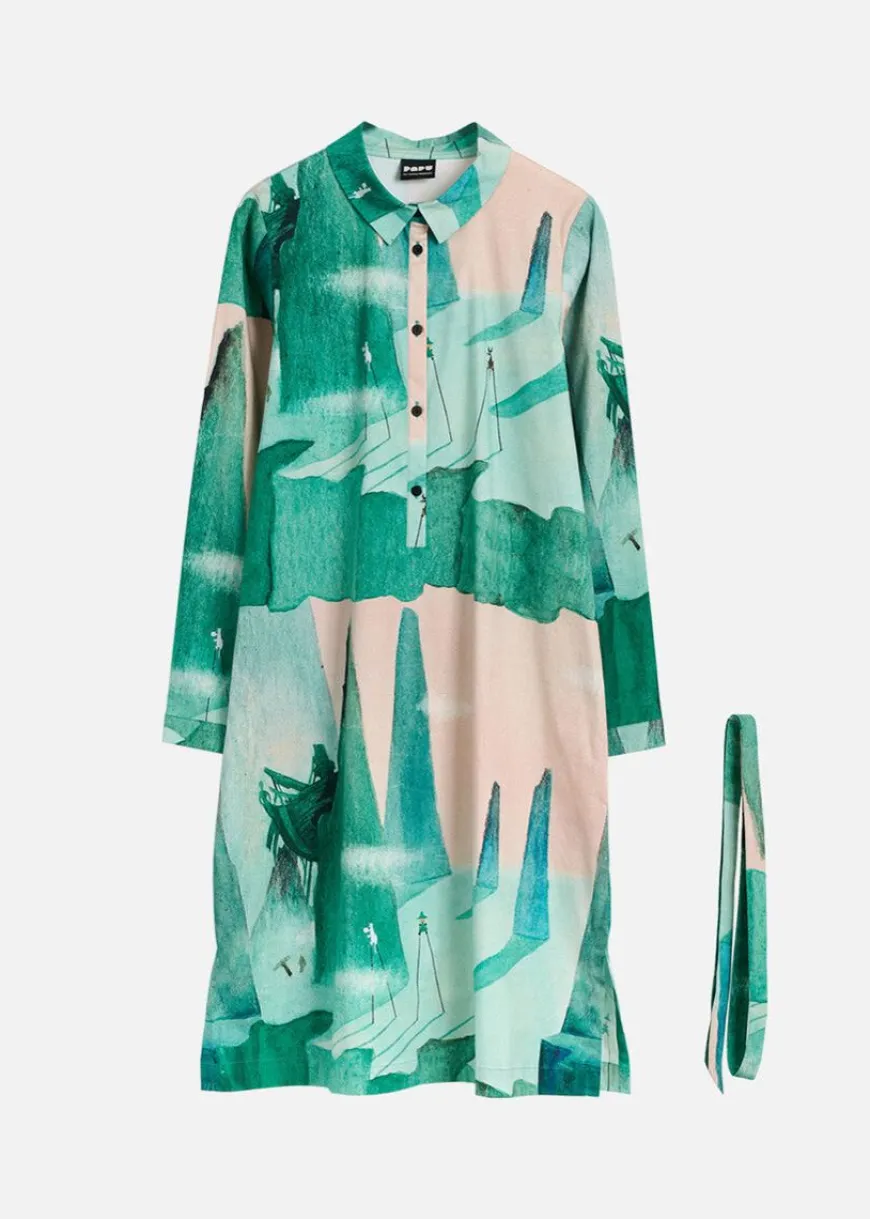 Papu -Merkin Paitamekko Shine Kuosilla.Papun Yhteistyö Moomin Charactersin Kanssa Jatkuu! Shine Malliston Tuotteissa Nähdään Vesiväreillä Maalattu Kuosi, Joka On Mukaeltu Tove Janssonin Luomasta Muumipeikko Ja Pyrstötähti -Kirjan Kuvituksesta. Kuvassa On Muumipeikko, Nipsu Ja Nuuskamuikkunen, Jotka Matkustavat Puujaloilla Kuivuneen Meren Pohjassa.Tove Janssonin Herkkä Siveltimenjälki Sekä Vivahteikas Värienkäyttö Korostuu Kauniilla Tavalla Kuosissa. Papu On Aina Ihaillut Paitsi Tove Janssonin Omaleimaisia Kuvituksia, Myös Hänen Tarinoitaan, Joista Löytyy Pinnan Alta Vahva Arvopohja. Tove Janssonin Teoksista Välittyy Rohkeus, Tasa-Arvoisuus Ja Edelläkävijyys. Muumien Kautta Jansson Nostaa Esiin Oman Tien Kulkemisen Ja Suvaitsevaisuuden Merkitystä, Ja Tämän Tänäkin Päivänä Ajankohtaisen Sanoman Takana On Helppo Seistä.Siro, Yläosastaan Istuva Ja Alaspäin Hieman Levenevä Suoran Mallinen Pitkä Paitamekko On Papun Yksi Rakastetuimpia Klassikoita. Mukana Tulee Vyö, Jolla On Helppo Muuttaa Mekon Ilmettä – Kuro Vyötäröä Esiin Tai Jätä Rennommin Ilman! Mekon Kangas On Kevyttä Ja Laskeutuvaa Puuvillaa. Pyöreä Pääntie, Siro Paitakaulus Ja Edessä Napit. Pitkissä Hihoissa On Halkiot Ja Nappikiinnitys. Helman Sivuissa On Pienet Halkiot.