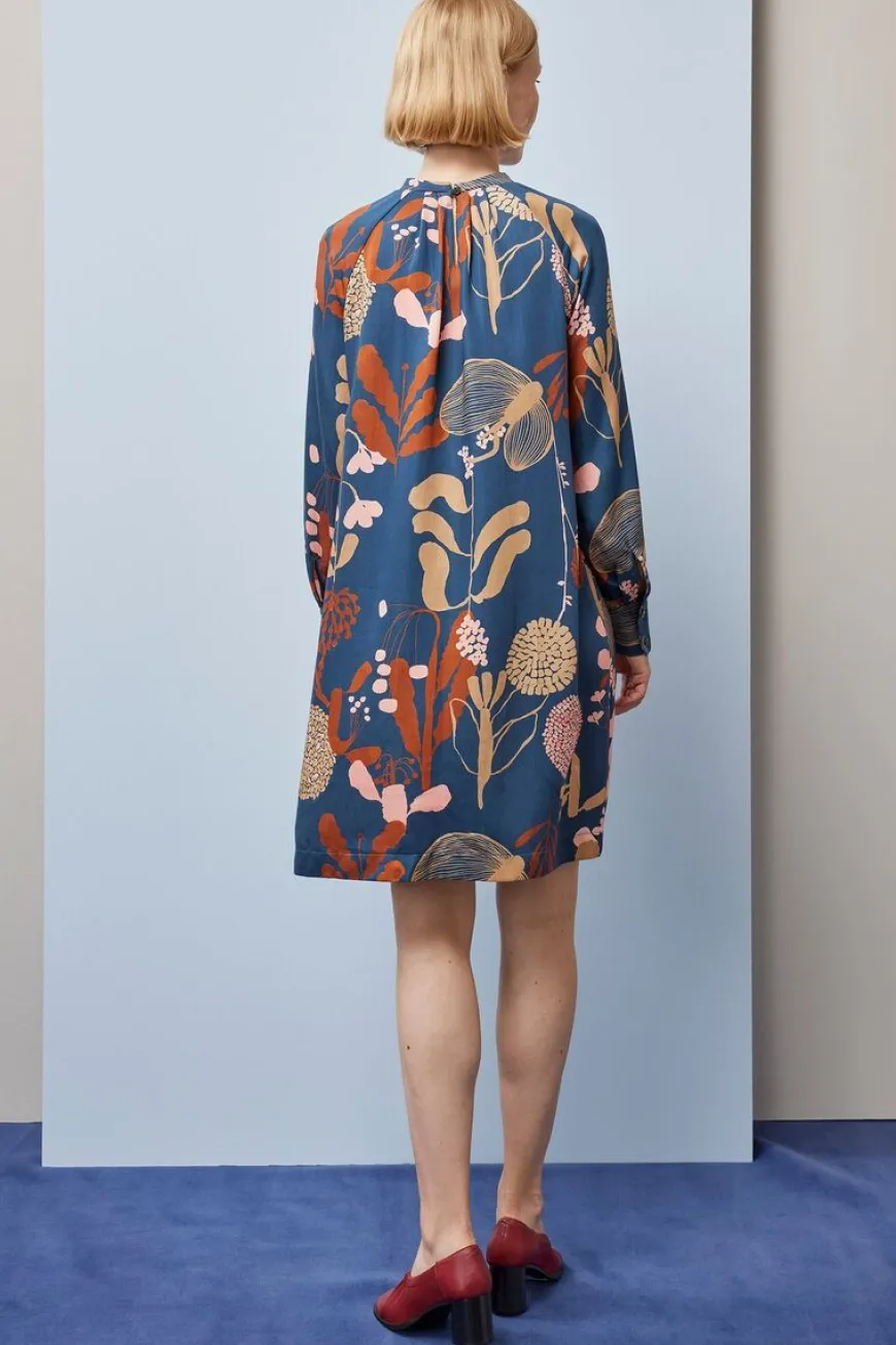 Papu -Merkin Pleated Mini Mekko Wild Garden Kuosissa.Wild Garden -Kuosi Nähdään Nyt Ihanan Tummana Versiona. Tumman Sininen Pohja Antaa Hienon Hehkun Kullan Ja Korallin Värisille Kasveille. Wild Garden -Kuosi Kertoo Salaisesta Mielikuvituskasvien Puutarhasta. Kasveilla On Erityisiä Taitoja: He Osaavat Tehdä Musiikkia, Niiden Terälehdet Valaisevat Pimeässä, Ja Niiden Lehdet Saavat Aikaan Rauhallisia Ajatuksia. Salainen Puutarha On Paikka, Jossa Hyvyys On Voimauttavaa Ja Jossa Menneisyyden Hetket, Nykyisyys Ja Tulevaisuus Kietoutuvat Toisiinsa Ja Kasvavat Yhtä Matkaa.Papun Tuttu Pleated-Mekko Nyt Lyhyellä Helmalla! Polvipituisessa, Alaspäin Hieman Levenevässä Mekossa On Kauniit Laskokset Pääntiellä Ja Hihansuissa. Pyöreällä Pääntiellä On Pieni Pystykaulus Ja Takana Nappi Sekä Halkio. Pitkissä Hihoissa On Halkiot Ja Napit. Mekon Voi Solmia Mukana Tulevalla Vyöllä. Kuosin Kohdistus Vaihtelee Tuotteittain. Wild Garden -Kuosi On Kuvittaja Reka Kiralyn Suunnittelema.