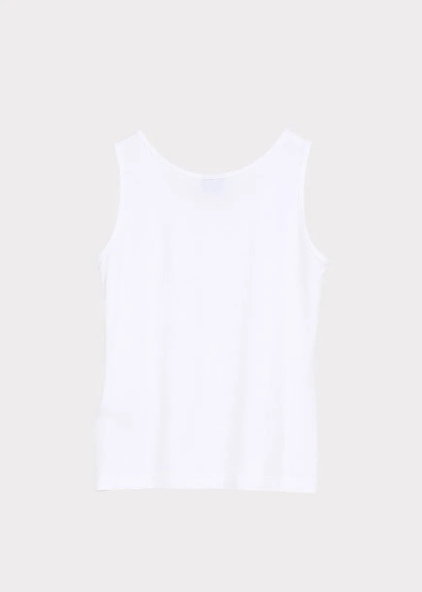 Papu -Merkin Toppi Valkoisena.Monikäyttöinen Hihaton Musta Toppi Pyöreällä Pääntiellä. Jokaisen Vaatekaapin Must-Have Tuote On Perustoppi, Joka On Helppo Käyttää Niin Aluspaitana Kuin Kesällä Sellaisenaan. Kauniisti Laskeutuva Ecovero On Erityisen Pehmeä Ja Mukava Materiaali Ihoa Vasten.