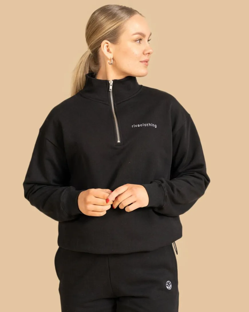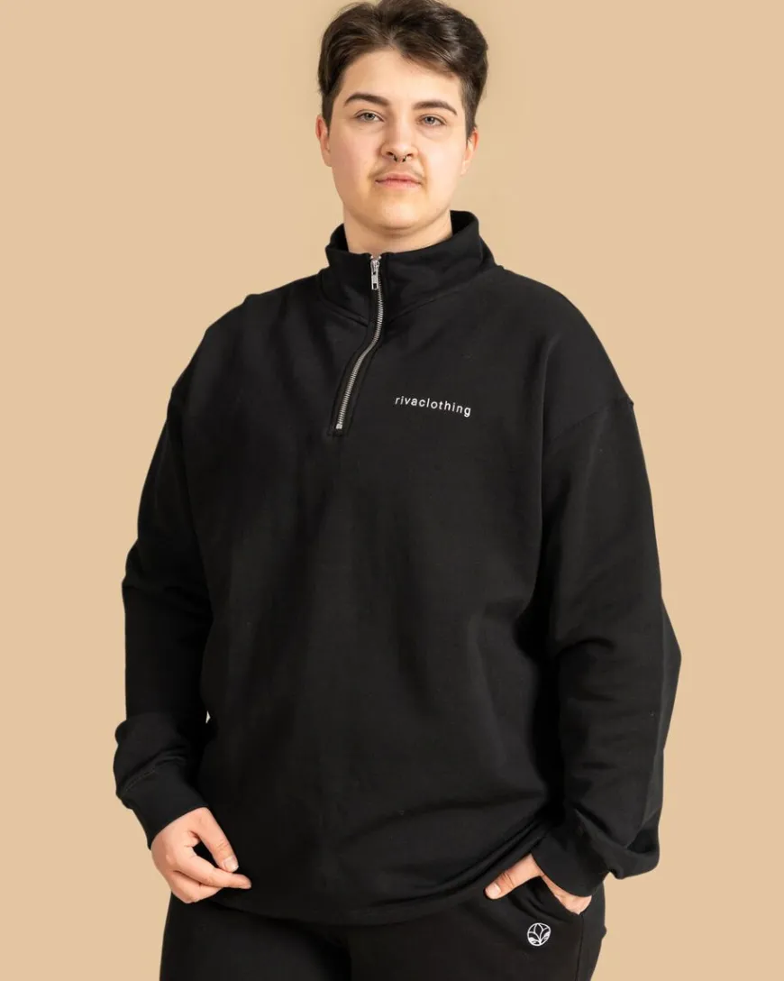 Riva Clothing -Merkin Musta Half-Zip Collegepaita.Rennolla Ja Väljällä Mitoituksella Valmistettu Vetoketjullinen Collegepaita On Ihana Lisä Vaatekaappiisi Jos Tarvitset Tyylikkään Paidan Rentoihin Päiviin. Yhdistä Farkkujen Tai Collegehousujen Kanssa, Tai Pue Leggingsien Kanssa Lenkille.Half-Zip Kollari On Sporttinen Vaatekappale Viileämmille Keleille. Korkeampi Kaulus Ja Helmassa Oleva Kiristysnauha Lisäävät Sporttisia Elementtejä. Kiristysnauhan Avulla Voit Säätää, Kuinka Korkealle Collegepaita Asettuu.Mitoitus On Rento Ja Väljä. Jos Haluat Istuvan Ja Vartalonmyötäisemmän Mallin, Ota Kokoa Pienempi. Jos Haluat Rennon Mallin Kuten Kuvissa, Ota Oma Kokosi.