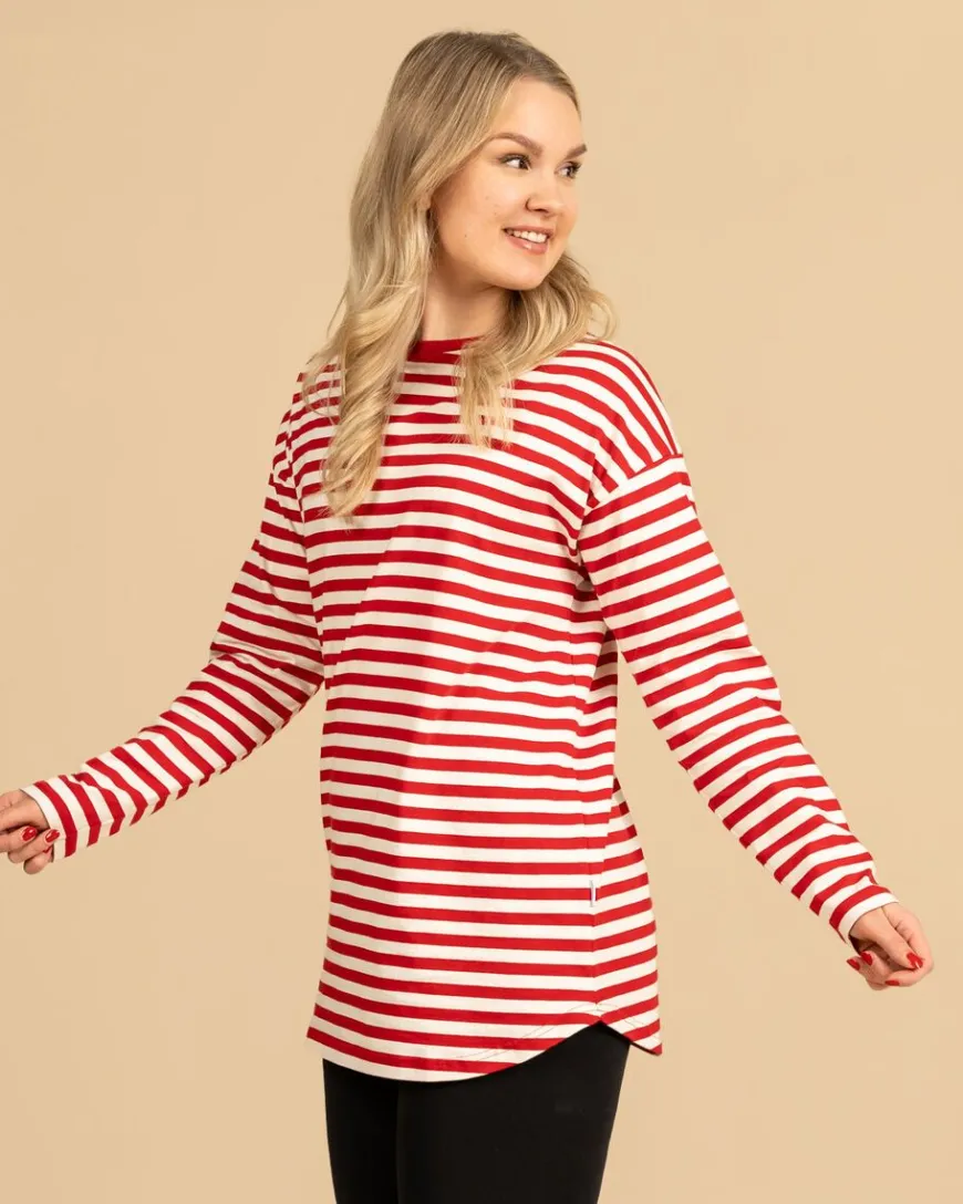 Riva Clothing -Merkin Pitkänmallinen Karpalo Pitkähihainen.Raidallinen Pitkähihainen Piristää Kivasti Asuja 3 Tämä Paita On Normaalia Mallia Pidempi Versio. Pitkän Ja Pyöristetyn Helman Ansioista Paidasta Ei Lopu Pituus Kesken Pidemmälläkään Ihmisellä.Istuvuus On Rento. Tässä Mallissa On Lasketut Olkapäät, Minkä Ansiosta Se Istuu Hyvin Kaikenkokoisille Hartioille. Myös Kainaloihin On Jätetty Tilaa, Jotta Kainalot Eivät Kinnaa Ja Hiosta. Pitkähelmainen Malli, Ylttää Yli Pepun.