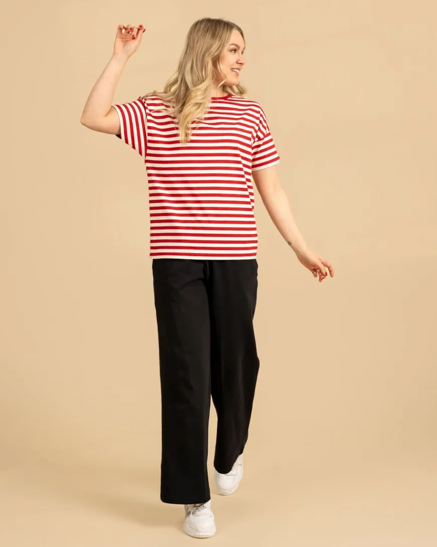 Riva Clothing -Merkin Raidallinen Karpalo T-Paita.Jokaisen Vaatekaapin Yksi Kulmakivistä – Laadukas T-Paita! Punavalkoraidallinen Teeppari Ja Farkut Toimii Aina, Mutta Yhdistät Paidan Hyvin Moneen Eri Asuun Ja Tilanteeseen. T-Paidassa On Lasketut Olkapäät, Minkä Ansiosta Se Istuu Paremmin Kaikenkokoisille Hartioille. Myös Kainaloihin On Jätetty Aiempaa Enemmän Tilaa, Jotta Kainalot Eivät Kinnaisi Ja Hengittävyys Olisi Taattu. Noki T-Paita On Normaalin Mittainen Malli.