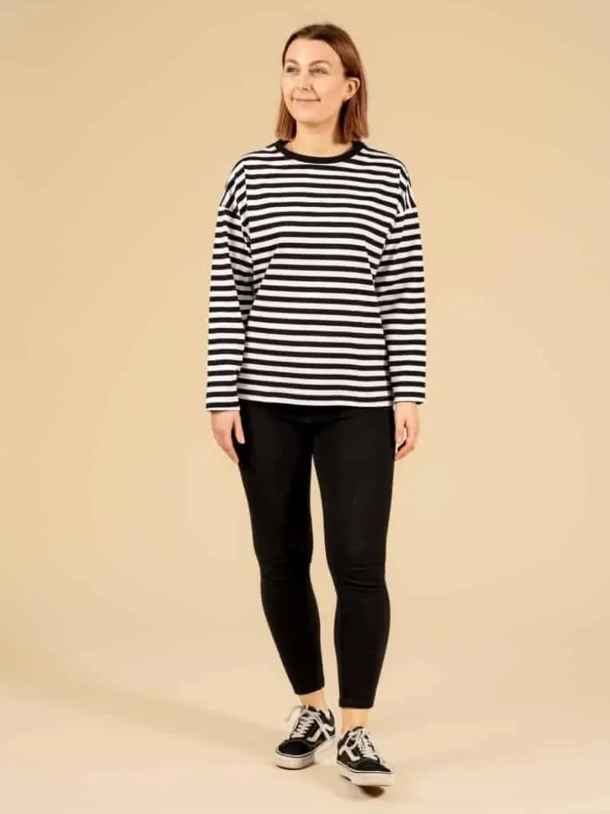 Riva Clothing -Merkin Raidallinen Muisto Pitkähihainen.Rivan Rakastettu Mustavalkoraidallinen Pitkähihainen On Täydellinen Lisä Jokaiseen Vaatekaappiin 3Tämä Unisex Pitkähihainen On Täydellisen Rento Malli. Klassinen Mustavalkoinen Raitapaita On Helppo Yhdistellä Eri Asuihin! Istuvuus On Rento Ja Helma On Normaalin Mittainen Ja Suora. Malli On Sama Kuin T-Paidoissa Ja Olkapäät Ovat Lasketut. Tämän Ansiosta Paita Sopii Hyvin Kaiken Kokoisille Hartioille. Kainaloihin On Jätetty Tilaa, Jotta Kainalot Eivät Kinnaa Ja Hiosta. Malli On Unisex.