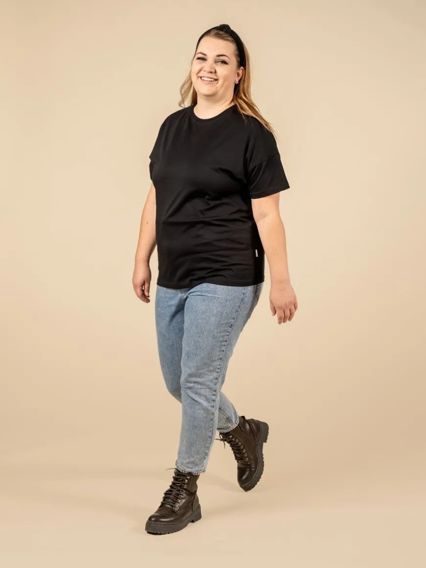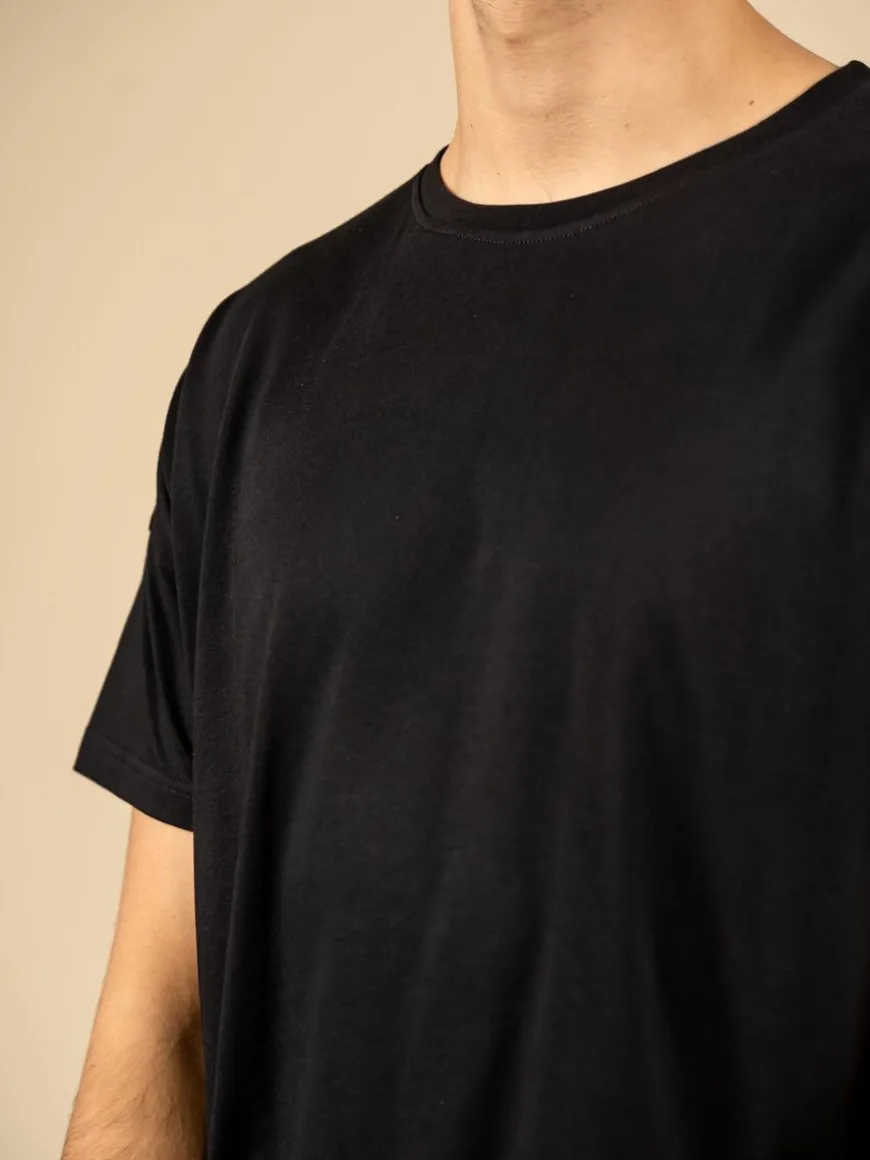 Riva Clothing -Merkin Musta Noki T-Paita.Jokaisen Vaatekaapin Yksi Kulmakivistä – Laadukas Musta T-Paita! Musta T-Paita Ja Farkut Toimii Aina, Mutta Yhdistät Paidan Hyvin Moneen Eri Asuun Ja Tilanteeseen. T-Paidassa On Lasketut Olkapäät, Minkä Ansiosta Se Istuu Paremmin Kaikenkokoisille Hartioille. Myös Kainaloihin On Jätetty Aiempaa Enemmän Tilaa, Jotta Kainalot Eivät Kinnaisi Ja Hengittävyys Olisi Taattu. Noki T-Paita On Normaalin Mittainen Malli.