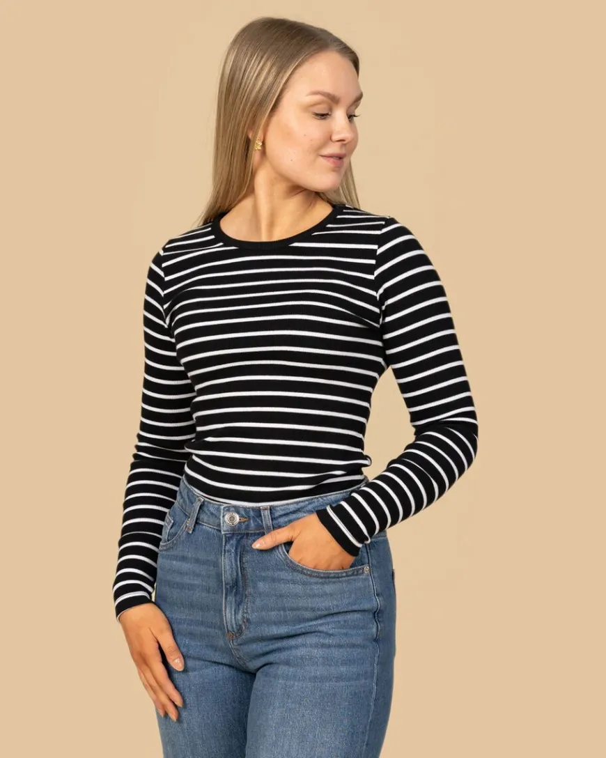 Riva Clothing -Merkin Raitapaita.Tämä Pitkähihainen Mustavalkoraidallinen Pitkähihainen Paita On Jokaisen Vaatekaapin Kulmakivi. Paidassa On Kaunis Vartalonmyötäinen Istuvuus. Mukavasta Ja Joustavasta Ribbimateriaalista Tehty Pitkähihainen Paita Sopii Moneen Asuun Ja Asuyhdistelmiin. Paidassa On Vartalonmyötäinen Istuvuus. Materiaali On Paksua Ja Kestävää Luomupuuvillaa, Joustavaa Ribbi-Neulosta.