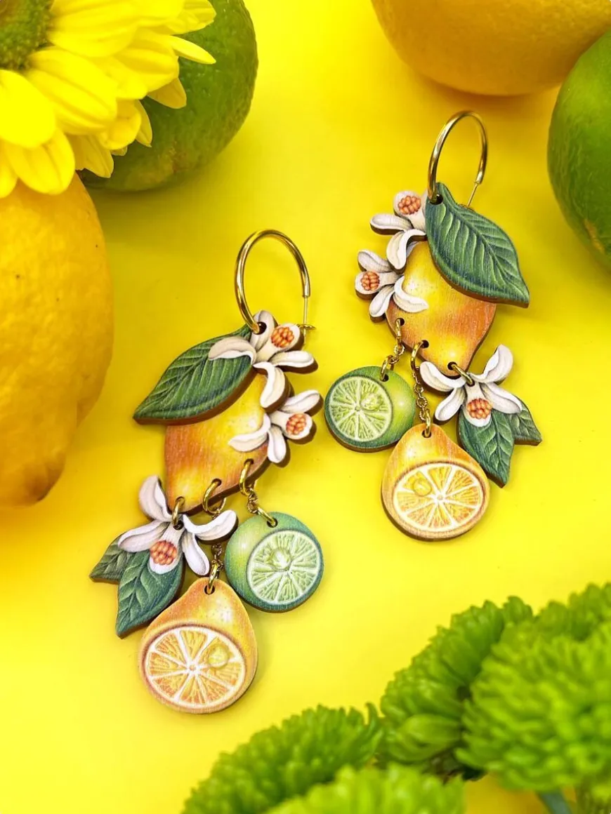 Design By Kieto -Merkin Ihanat Moniosaiset Sitrus Korvakorut.Koko:Leveys: 4 Cm Korkeus: 10,5 Cm (Rengaskoukku On Laskettu Mukaan) Vanerin Paksuus: 3 Mmkorun Puuosa On Suomalaista Koivuvaneria, Metalliosat Kullattua Terästä. Koru On Molemmin Puolin Kuvioitu. Koru On Pakattu Kauniisti Kukkivaan Design By Kieto -Rasiaan.Valmistettu Suomessa.