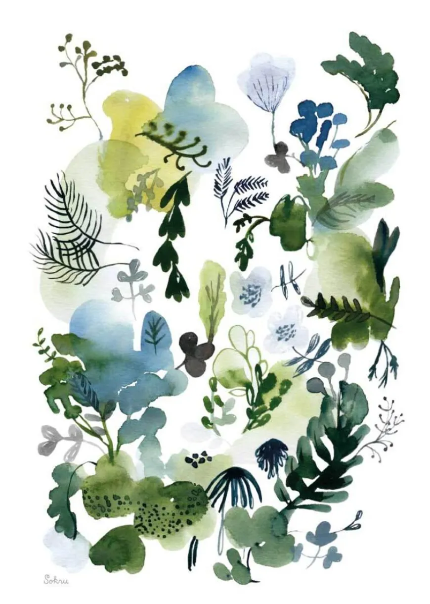 Sokru -Merkin Lehdet Postikortti.Sokru On Kuvitukseen, Kuosi- Ja Visuaaliseen Suunnitteluun Keskittynyt Suunnittelutoimisto. Outi Virtanen Kuvittaa Printtejä, Kankaita, Kirjoja Ja Tapetteja. Kuvitusten Aiheet Liittyvät Skandinaaviseen Luontoon Ja Niissä Vilisee Kasveja Ja Erilaisia Hahmoja.