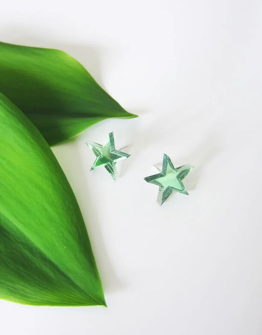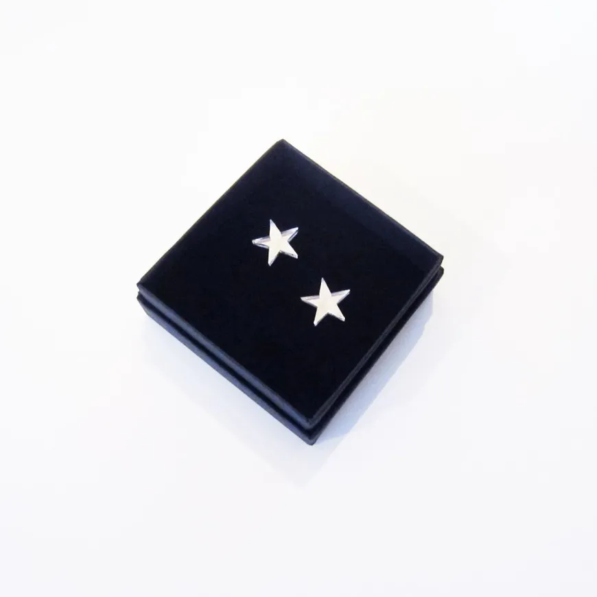 Saara Ruskola -Merkin Tähti -Korvakorut.Koko: N. 1,5 X 1,5 Cmmateriaali: 3 Mm Paksu Peiliakryylitapit: 925-Hopeakorut Toimitetaan Tyylikkäässä Mustassa Rasiassa.Suunniteltu Ja Valmistettu Helsingissä.