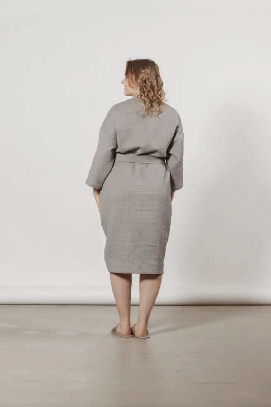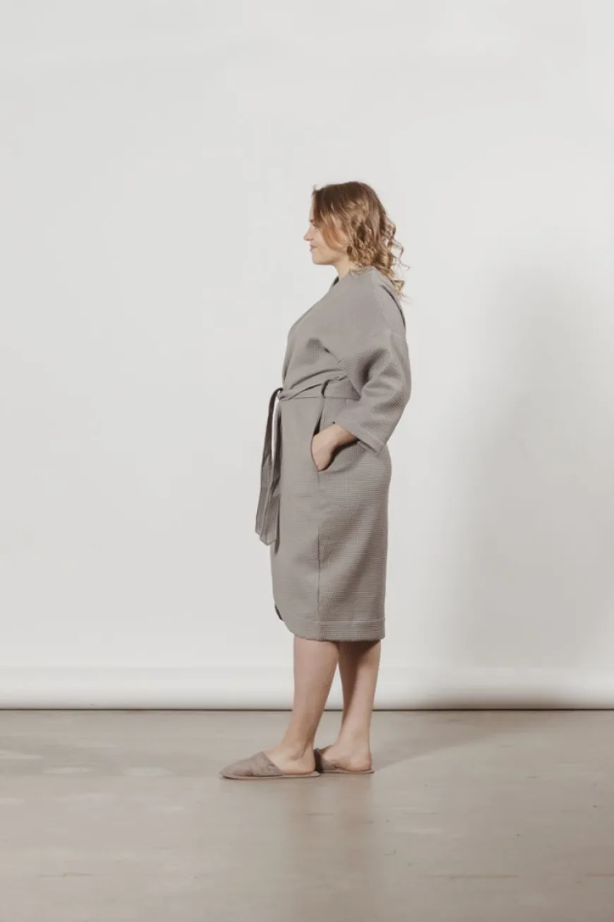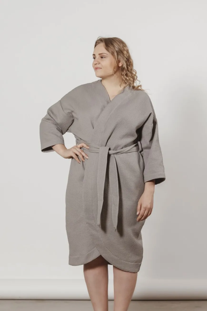 Puuvillatehtaan Tulppaani Vohvelikangaskylpytakki Harmaana. Tulppaanimallinen Kylpytakki Nostalgisessa Vohvelikankaassa. Kevyt Vohvelitakki Toimii Mainiosti Myös Aamutakkina, Ja Kaunis Lämpimän Harmaan Sävy Sopii Monen Kylpyhuoneen Sisustukseen. Takissa On Hieman Vajaamittaiset Hihat, Tulppaanimaisesti Pyöristyvä Helma Ja Taskut Sivusaumoissa. Takissa Normaali Istuvuus. Malli On 164Cm Ja Käyttää Kokoa L.Materiaali: 100% Puuvillaöko-Tex Standard 100, Luokka 1 -Sertifikaattituote On Valmistettu Portugalissa.Suositellaan Pesemään 40 Asteessa.