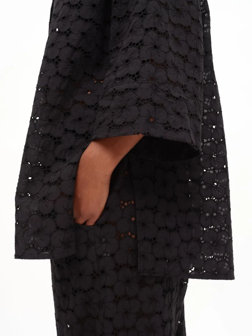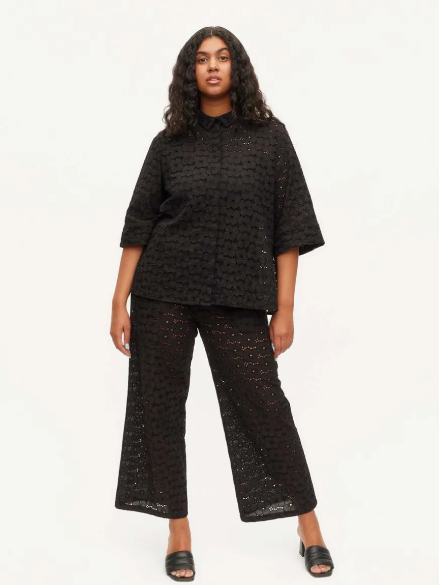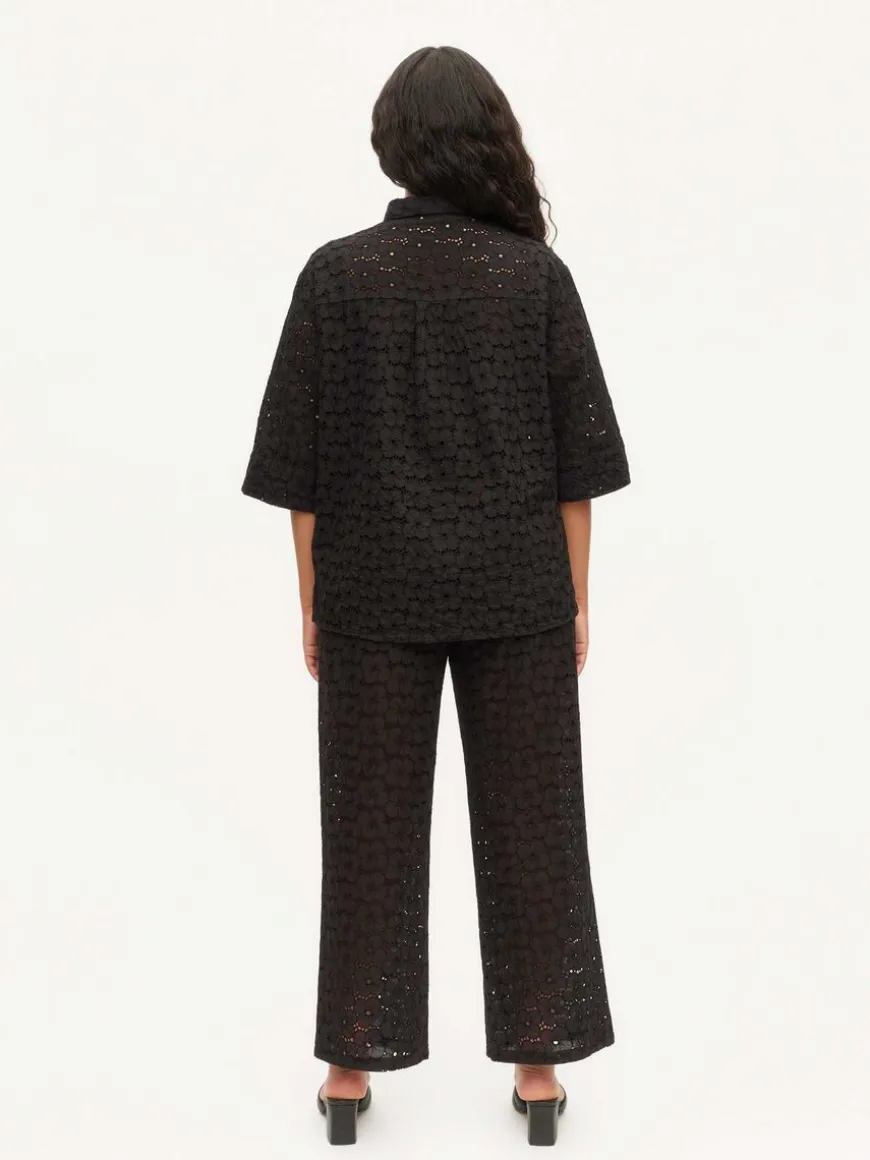 Uhana -Merkin Air Housut Mustana.Läpikuultavasta Puuvillapitsistä Valmistetut Suoralinjaiset Housut Arkeen, Vapaa-Ajalle Sekä Juhlaan! Yhtenäisen Lookin Luomiseksi, Yhdistä Housut Saman Materiaalin Fresh Air Paidan Kanssa.Housuissa On Suora Lahje, Sivutaskut Ja Kuminauhavyötärö. Ei Vuoria.