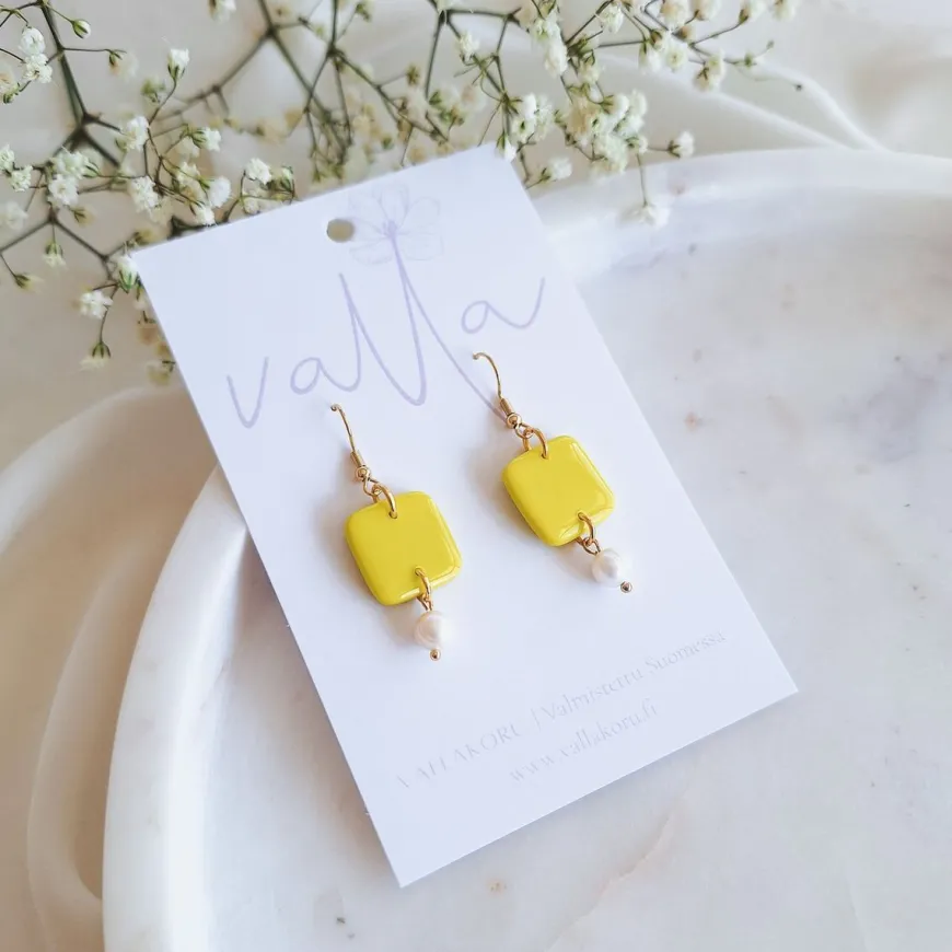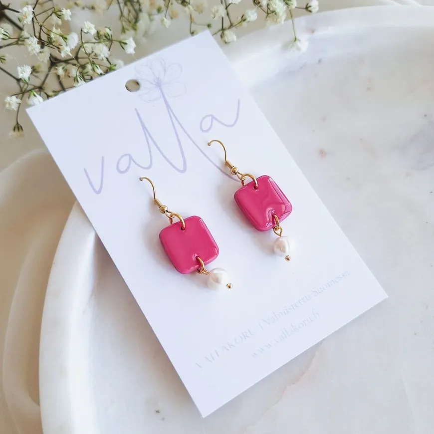 Valla -Merkin Enia Korvakorut.Söpöt Pienikokoiset Korvakorut Kiiltävällä Pinnalla Ja Aidolla Makeanvedenhelmellä.Korkeus Koukun Kanssa: 5 Cmmateriaali: Polymeerimassa, Koruhartsi, Makeanvedenhelmi, Teräs, Messinkikorun Korvakorukoukut Ovat Kirurginterästä, Muut Metalliosat Messinkiä Tai Terästä.Tuote Toimitetaan Vallan Korttipohjalla.