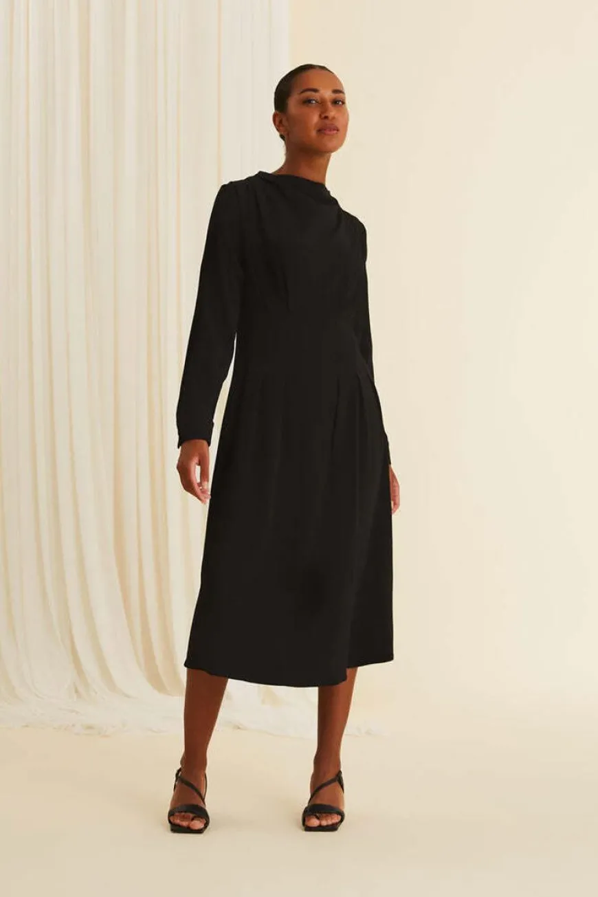 Voglia -Merkin Cara Viskoosimekko Mustana.Ajattomin Yksityiskohdin Viimeistelty Cara On Valmistettu Mukavasti Ja Kauniisti Laskeutuvasta Viskoosikankaasta. Tässä Pitkähihaisessa Mekossa On Korkea Pääntie Ja Runsaasti Tyylikkäitä Laskoksia. Klassinen Cara Sopii Monenlaisiin Tilaisuuksiin Ja Tapahtumiin Työtapaamisista Merkkipäiviin.Pituus 111 Cmvetoketju Takana Keskelläei Vuoria