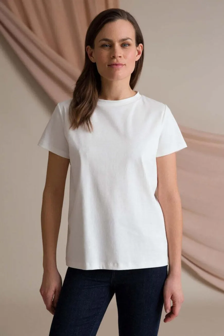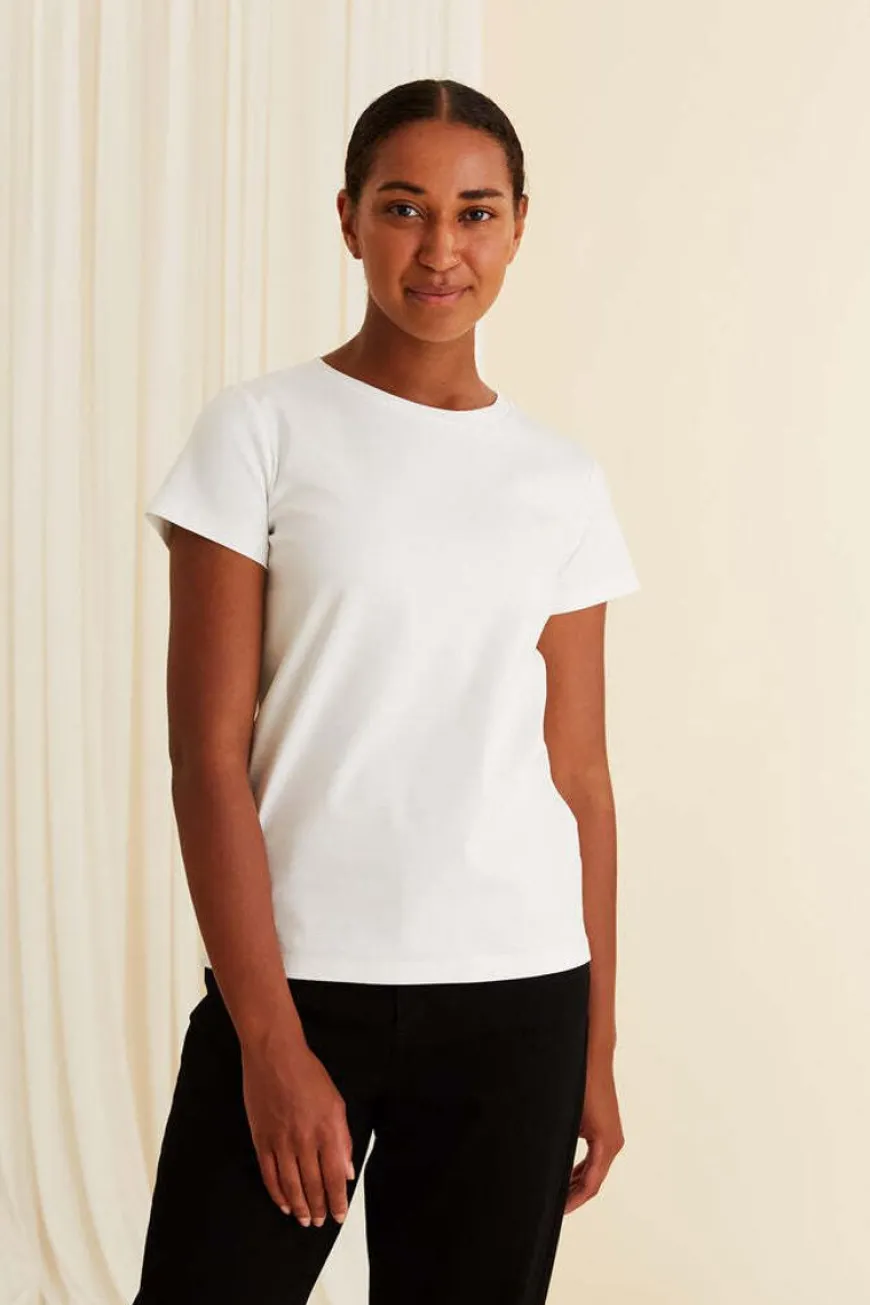 Voglia -Merkin Katrina T-Paita Valkoisena.Katrina On Ajaton Luottovaatte! Paita On Helppo Yhdistellä Erilaisiin Asuihin Ympäri Vuoden, Ja Klassinen Teeppari & Farkut Näyttää Aina Hyvältä. Lyhythihaisessa Puserossa On O-Pääntie, Ja Se Ommeltu Laadukkaasta Luomupuuvillasta. Neulos On Vastuullisesti Merseroitu, Pehmeä Iholla Ja Kestävä Käytössä.Joustava Neulospituus 62 Cm Koossa S