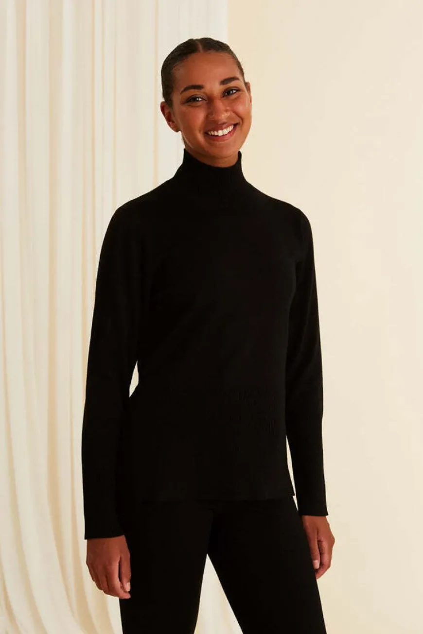 Voglia -Merkin Maxine Pooloneule Mustana.Tämä Korkeakauluksinen Neulepusero On Malliltaan Väljä Ja Mukava. Pehmeä Ja Sileä Viskoosimateriaali Hengittää, Joustaa Ja Tuntuu Miellyttävältä Iholla. Paidan Kaulus, Hihansuut Ja Helma Ovat Ribattua Neulosta. Maxine-Poolossa On Lisäksi Kauniina Ja Käytännöllisenä Yksityiskohtana Sivuhalkiot.Pituus 66 Cm