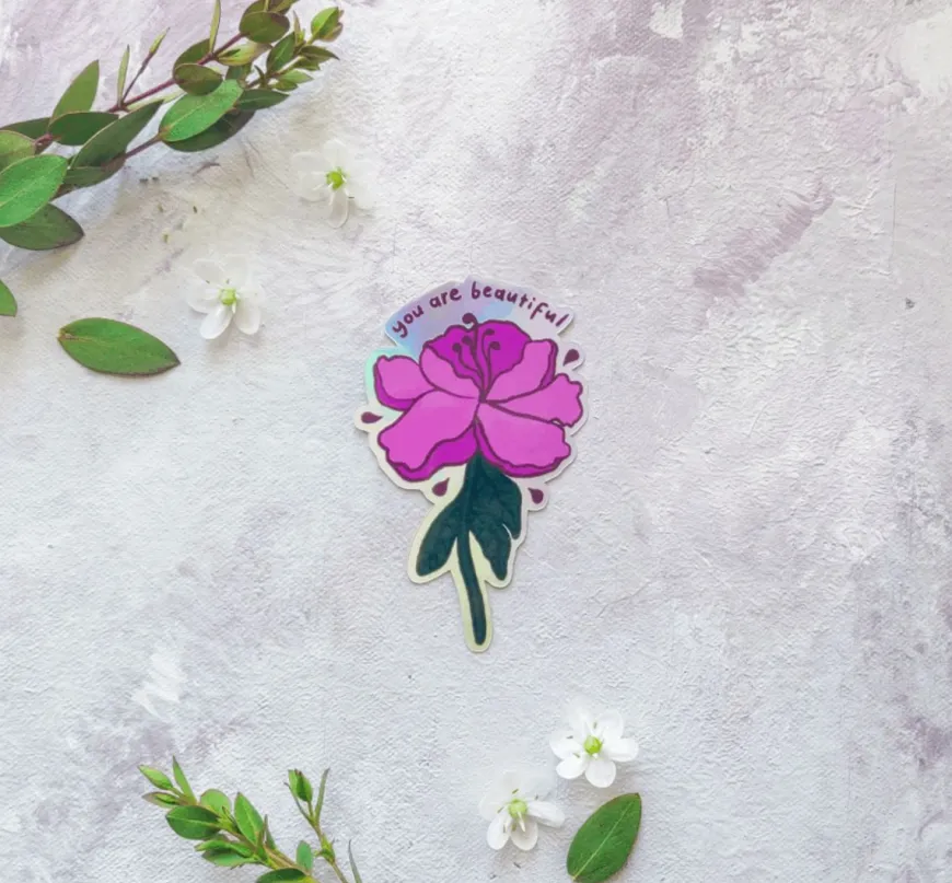 Pikku Paperi -Merkin You Are Beautiful Tarra.Tarra On Kestävä: Voit Liimata Sen Läppärin Kanteen, Puhelimenkuoreen, Pyörään Tai Juomapulloon. Kestää Myös Astianpesukoneessa!Koko: 4,9 X 7,8 Cmpainettu Ja Leikattu Ruotsissa. Suunnittelu Noora / Pikku Paperi.